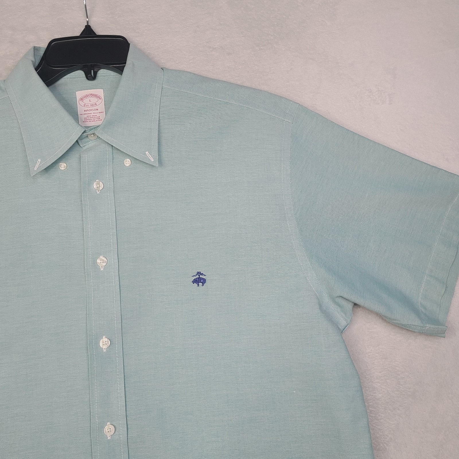 Brooks Brothers Shirt Mens L Short Sleeve Shirt Madison Fit Supima Cotton Green