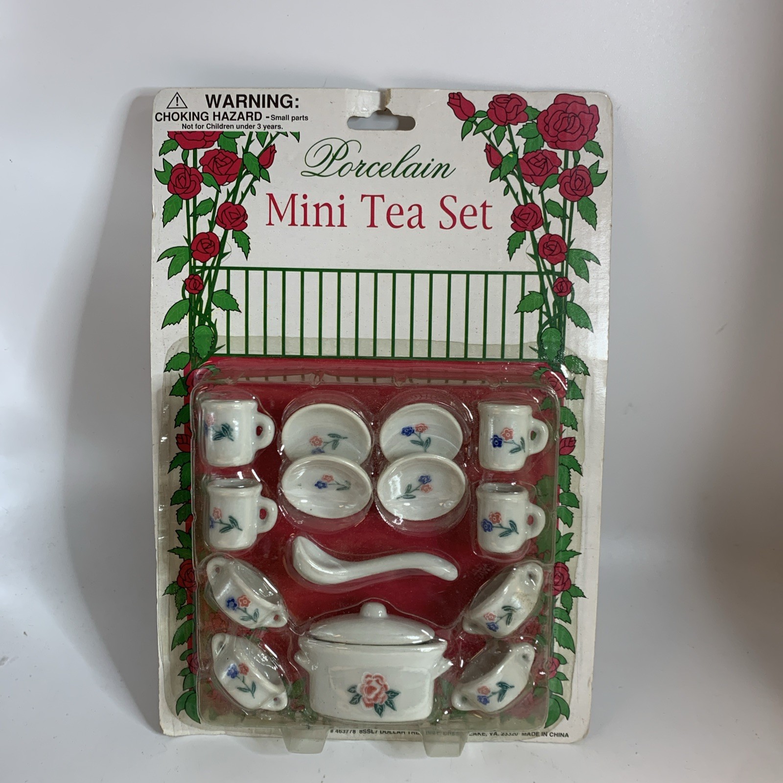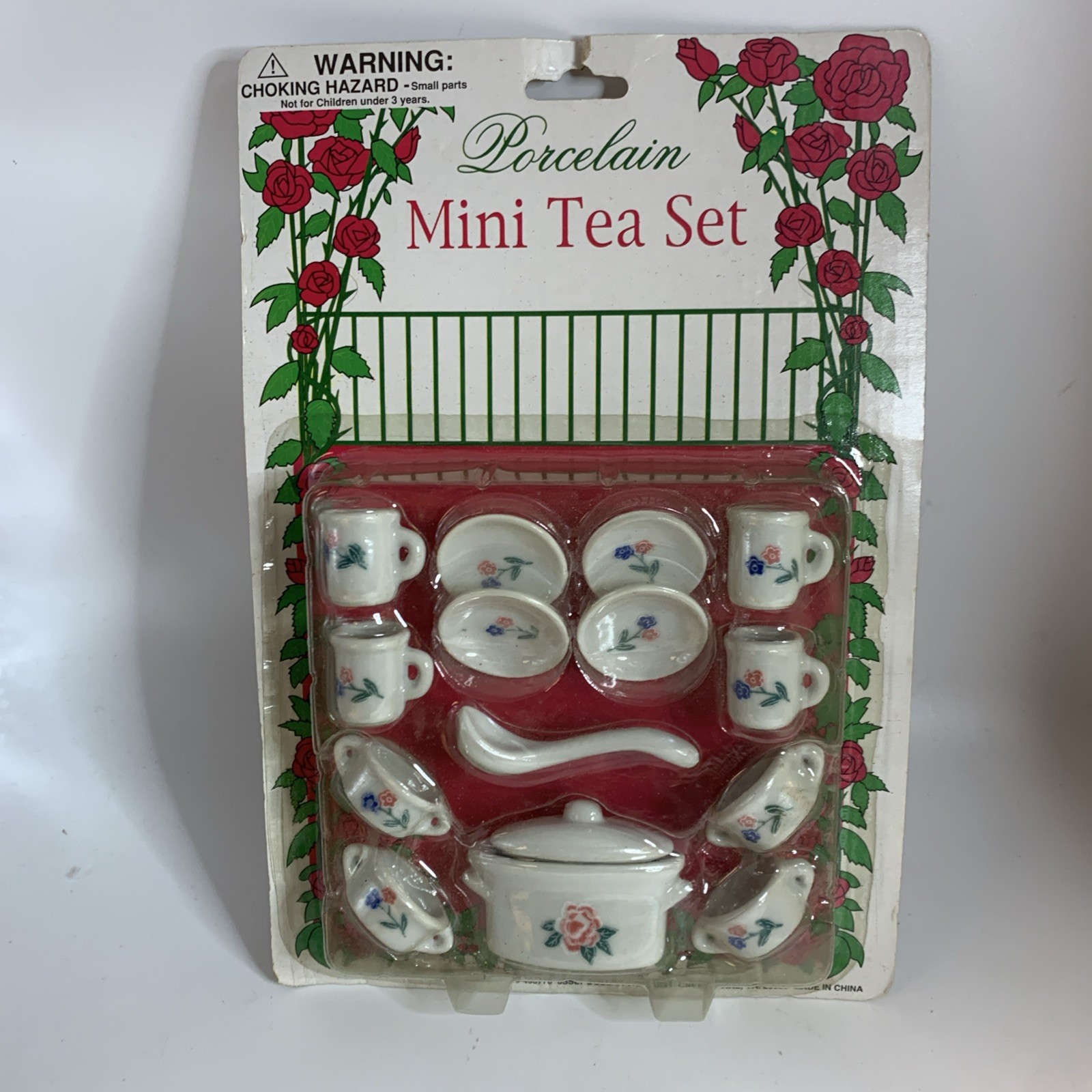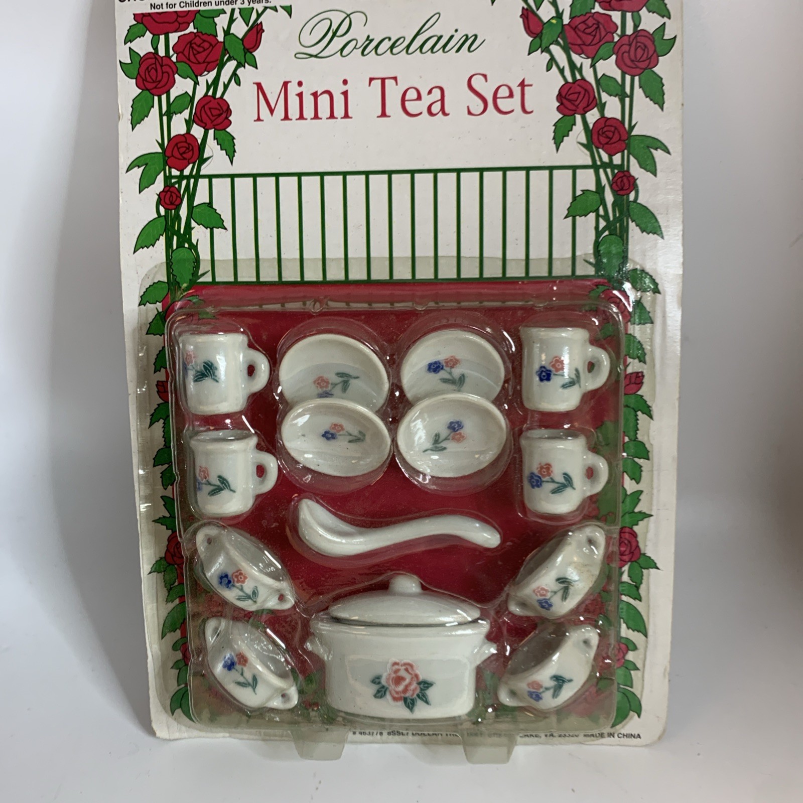 Vintage 1980s Mini Porcelain Tea Set 14 Piece Blue and White Floral Sealed Mint