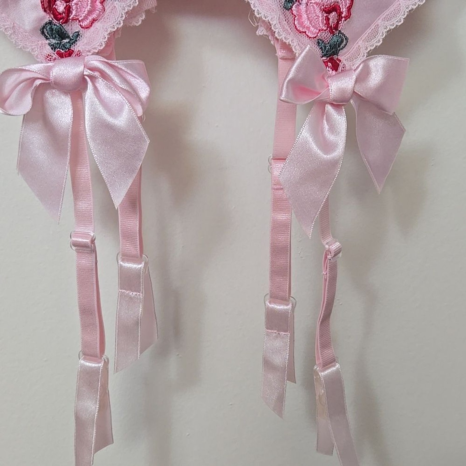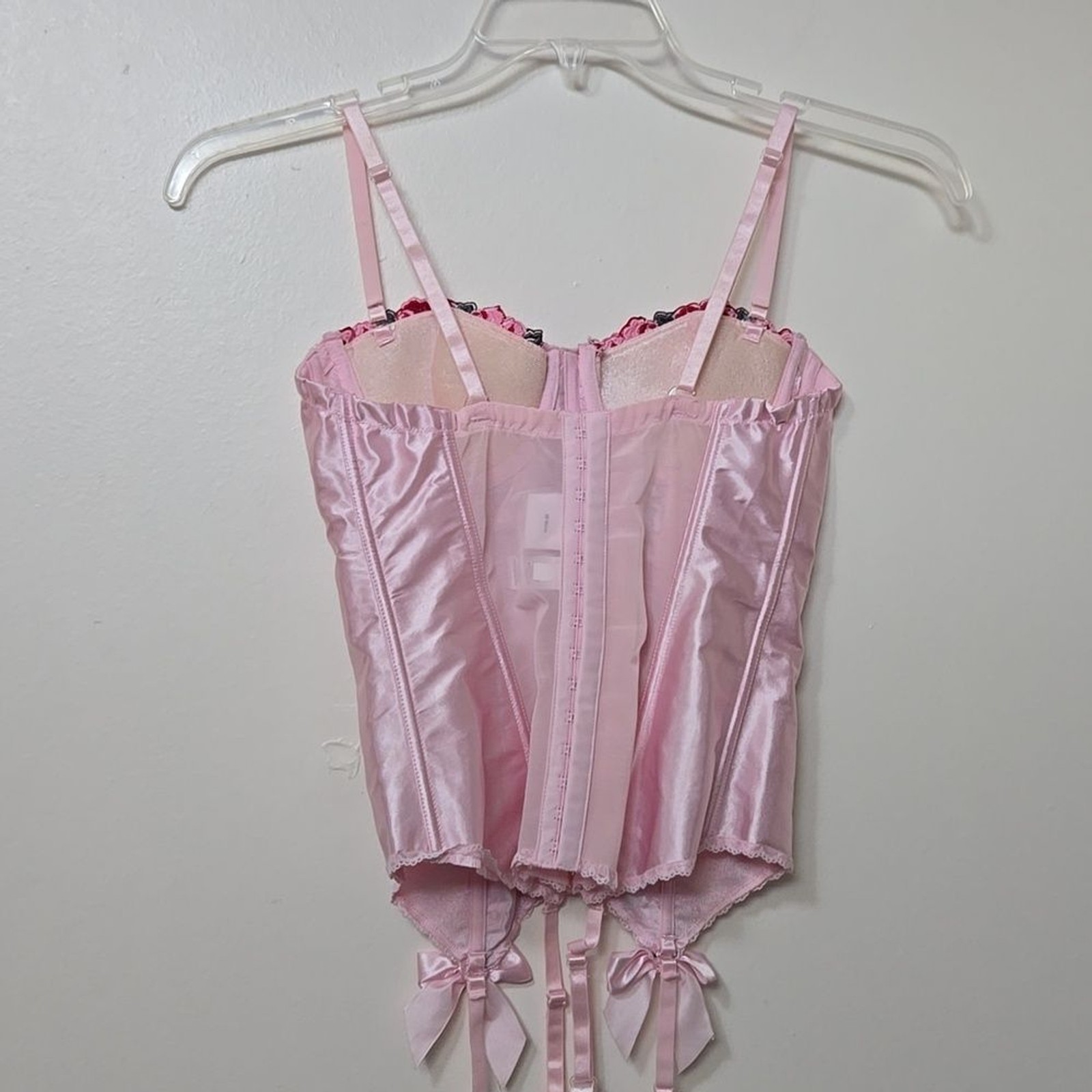 как выглядит Fredericks of Hollywood Pink Red Rose Embroidered Bustier Corset, Size 34B фото