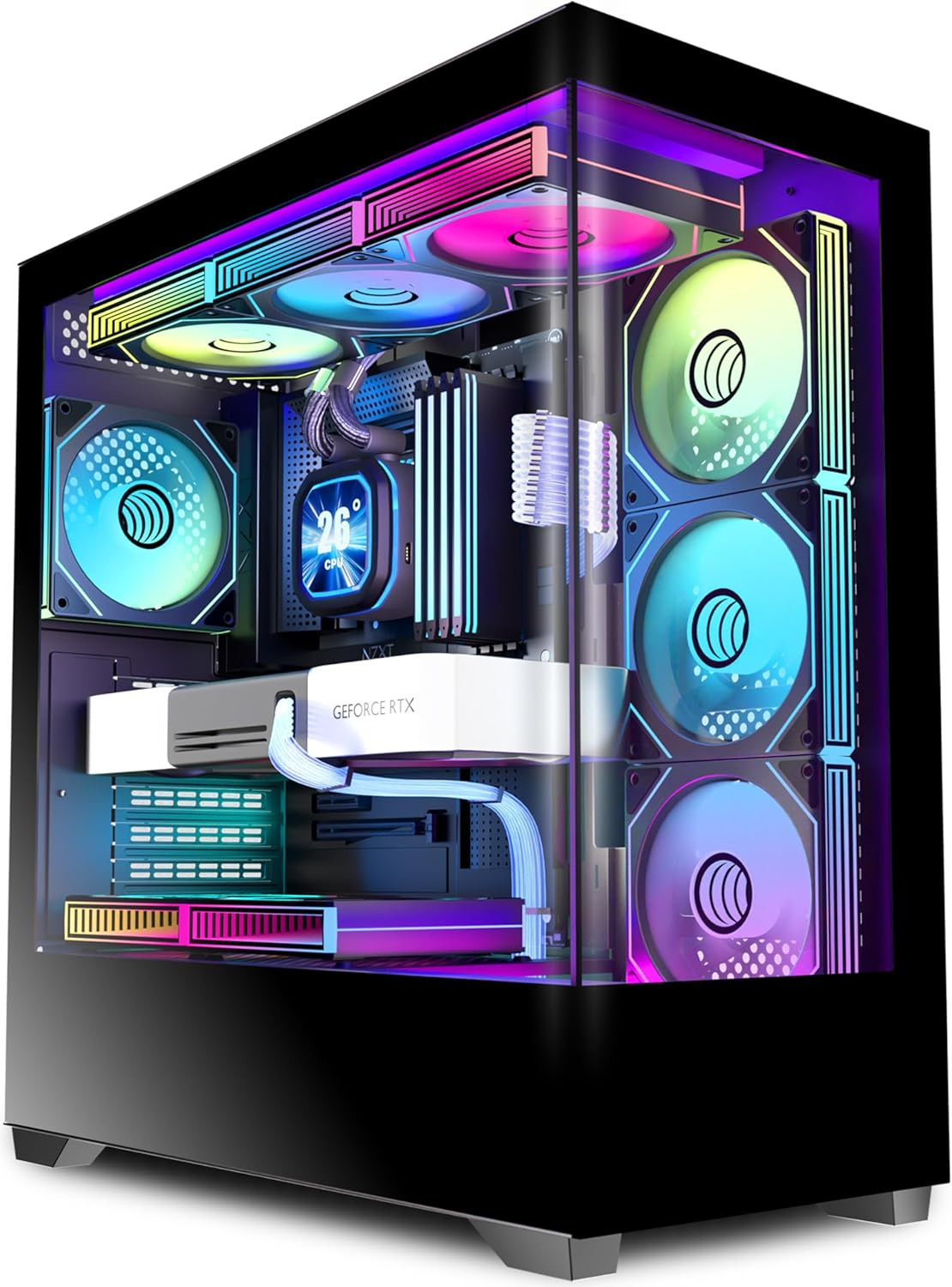 PC CASE ATX 7 PWM ARGB Fans Pre-Installed, Type-C Mid Tower Computer Case With