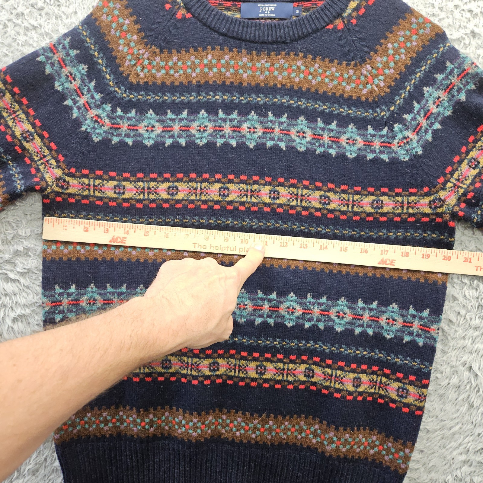 как выглядит J. Crew Men s Medium 100 Lambswool Fair Isle Crewneck Sweater Navy Blue Nordic фото