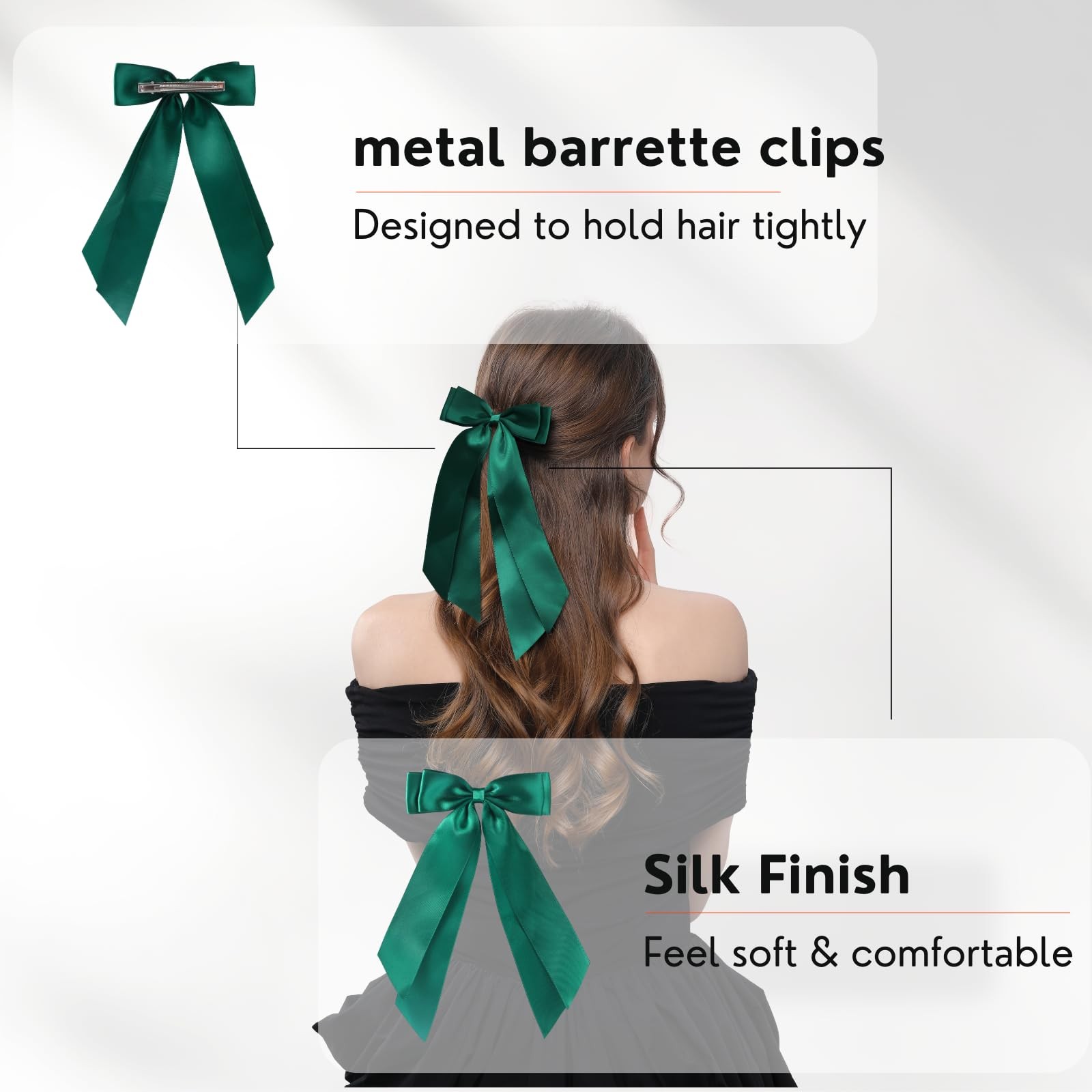 2 PCS Double Layer Hair Bows Green Ribbon Clips Ponytail Holder Accessories