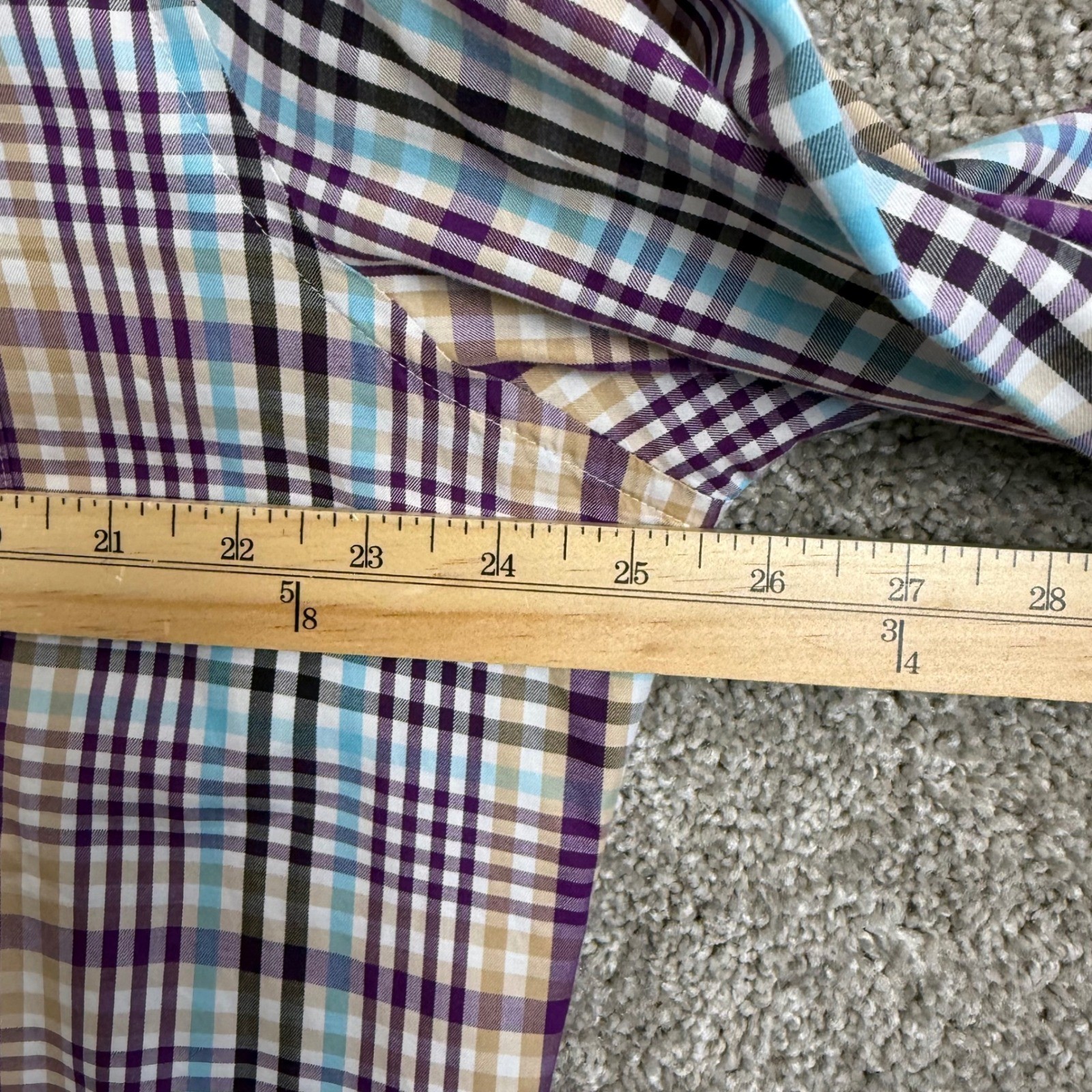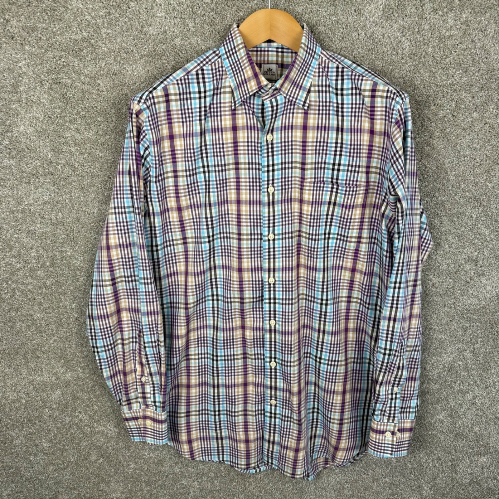 как выглядит Peter Millar Mens Large Plaid Button Down Shirt Purple Blue Cotton Long Sleeve фото