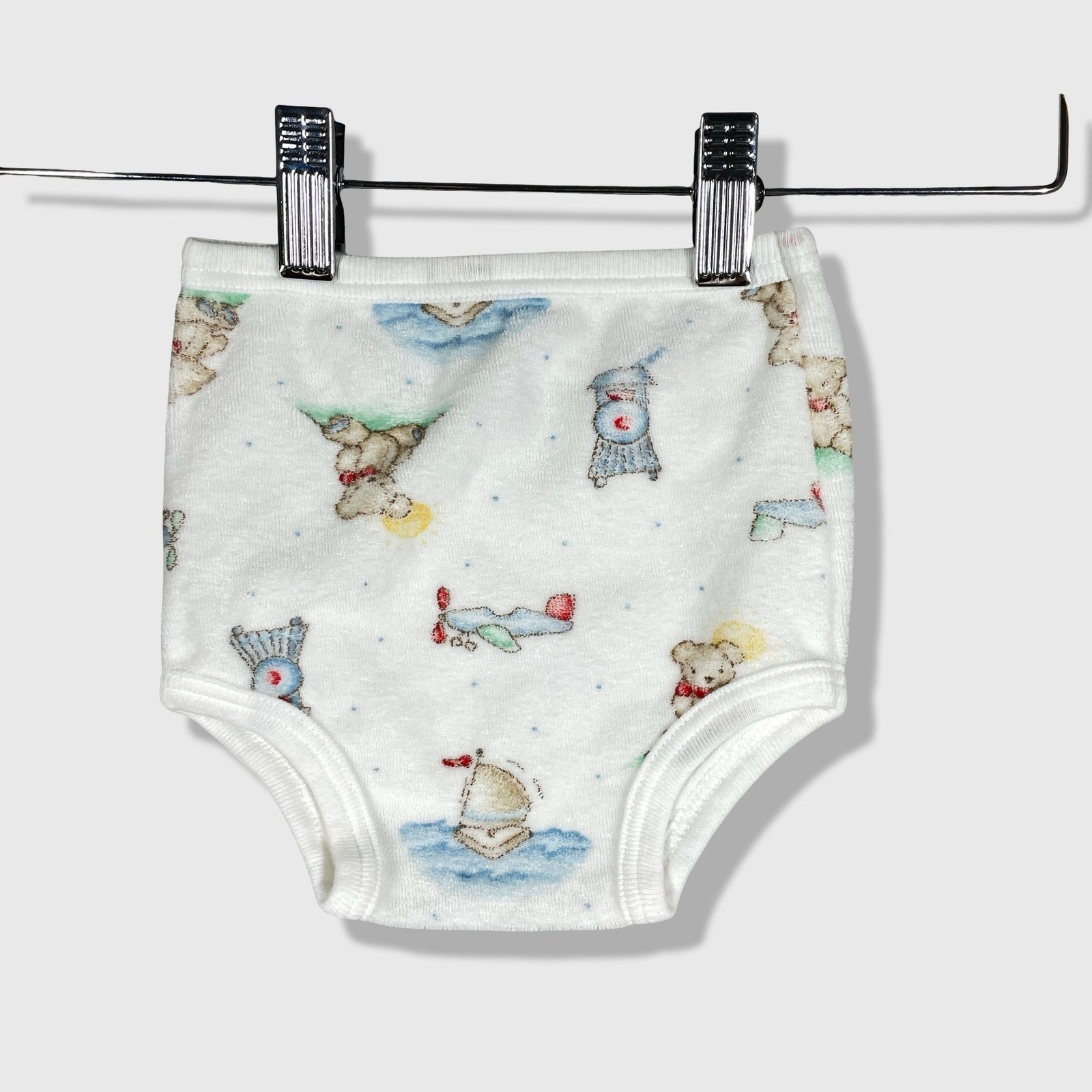 Carter's Pajama Set Kids 12M White Vintage Teddy Bear Train Airplane Terry Cloth