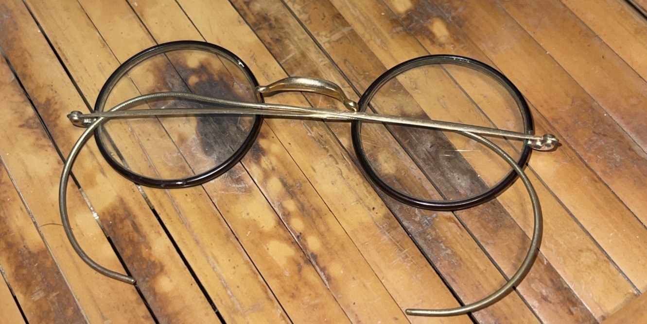 ANTIQUE 1920s Windsor Spectacles - Round Gold Filled Black Celluloid Glasses
