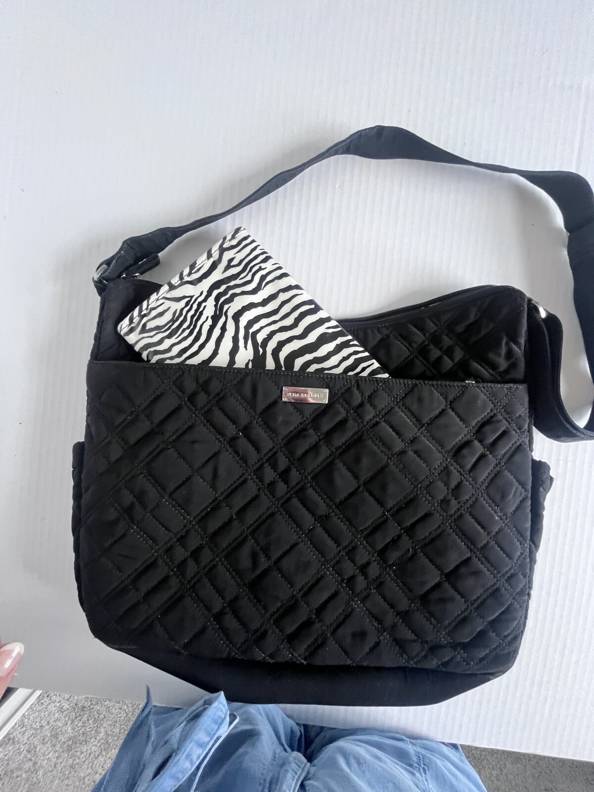 Vera Bradley Black Quilted Messenger Baby Diaper Bag Purse Zebra Lining