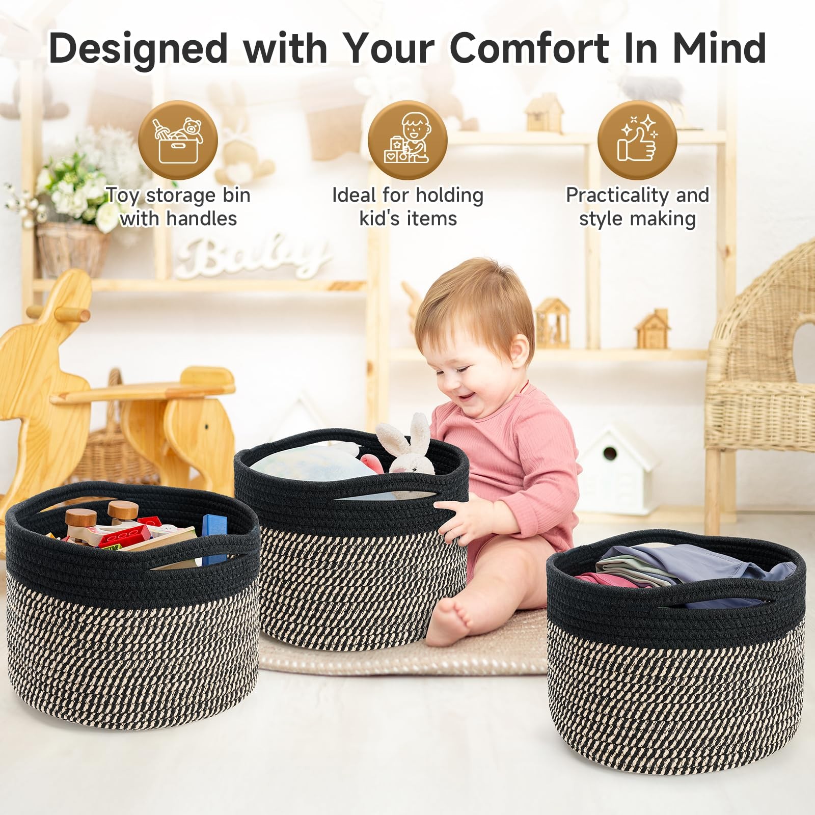 Small Rope Baskets for Storage, Baskets for Gifts Empty, Cute Round Woven Bas...