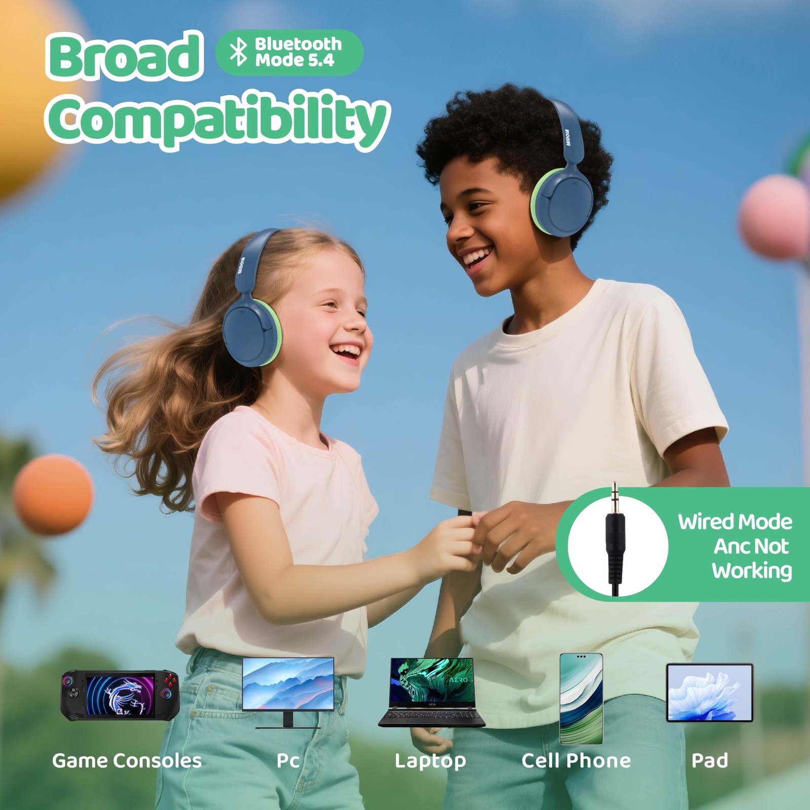 Active Noise Cancelling Kids Headphones Bluetooth 5.4 Wireless Volume Limited...