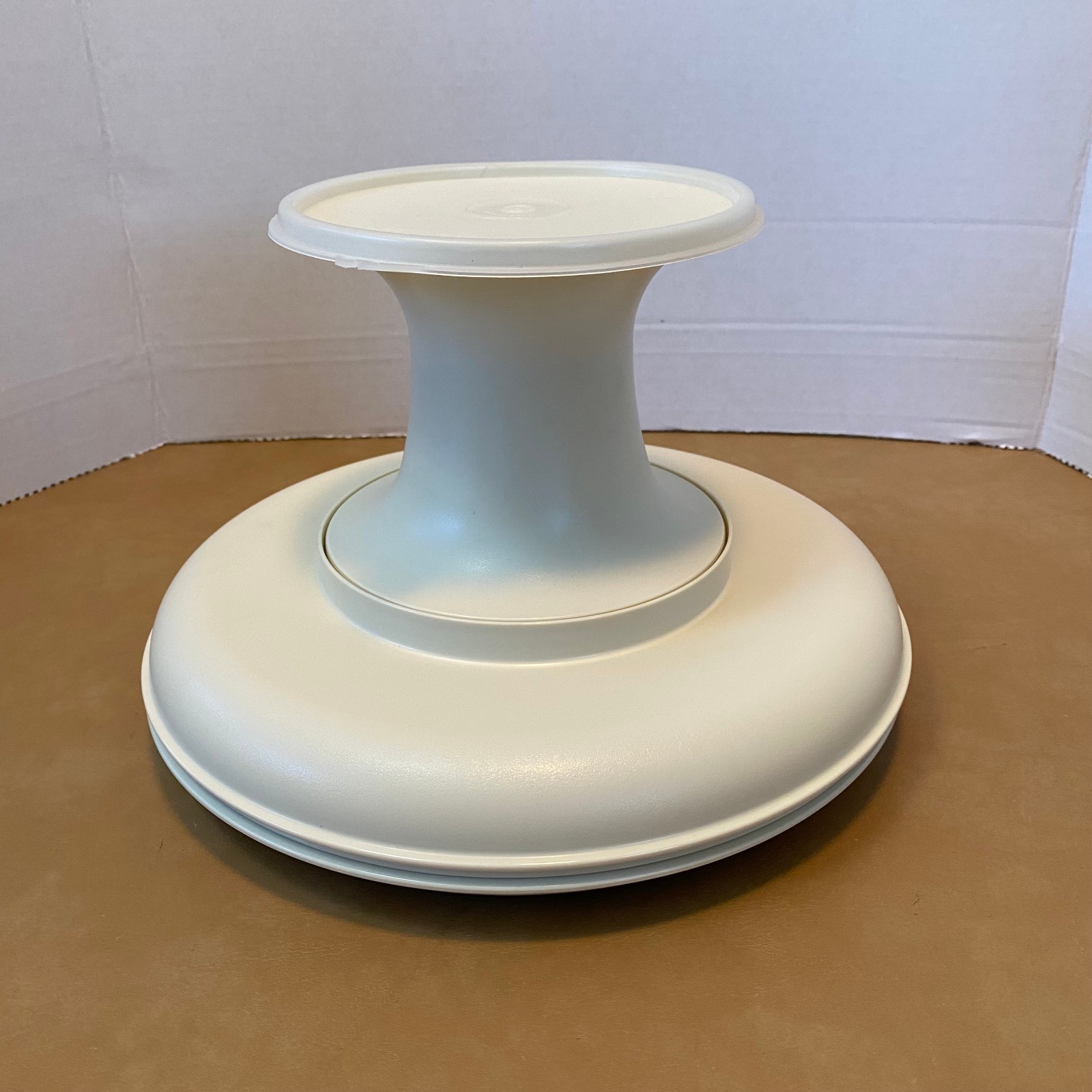 • VTG Tupperware Serve It All 4pc Set Cake/Pie/Veggie Pedestal/Tray/Lid Almond