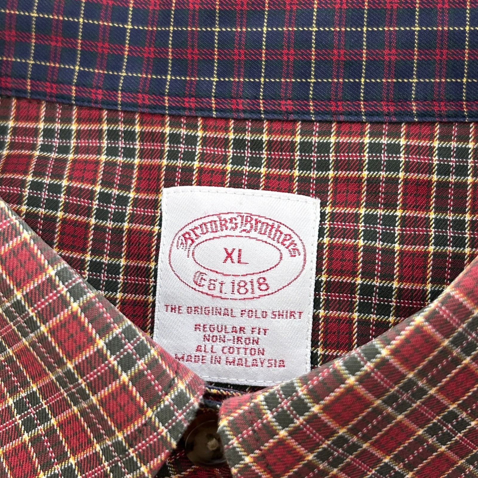 Brooks Brothers Button Down Shirt XL Red Plaid Non-Iron Regular Fit Cotton