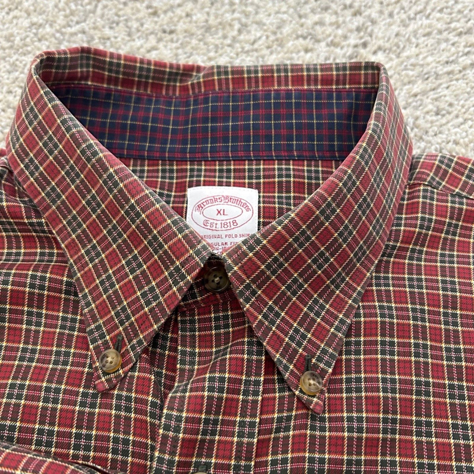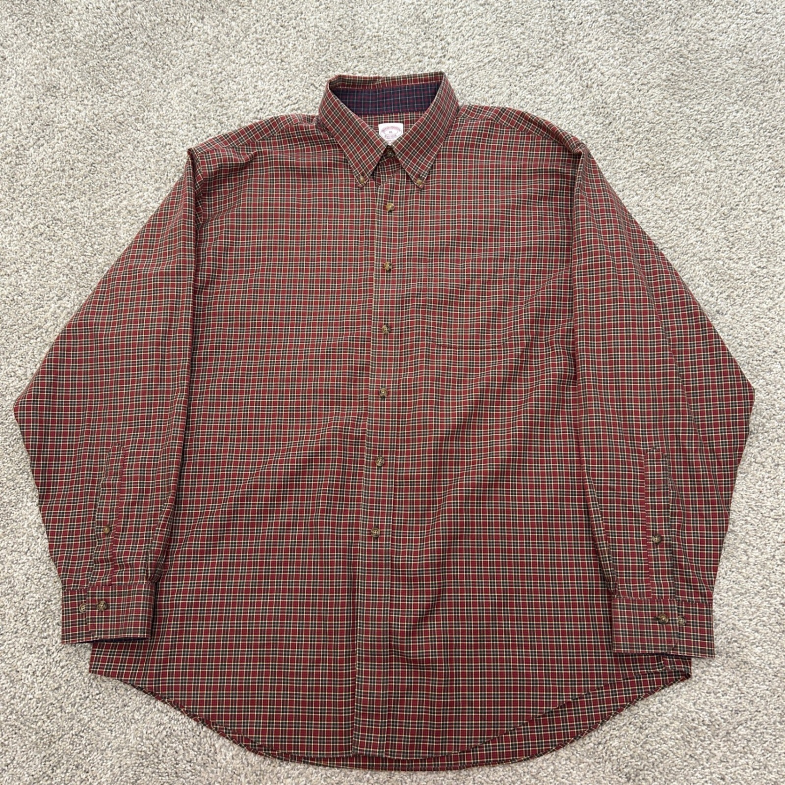 как выглядит Brooks Brothers Button Down Shirt XL Red Plaid Non-Iron Regular Fit Cotton фото