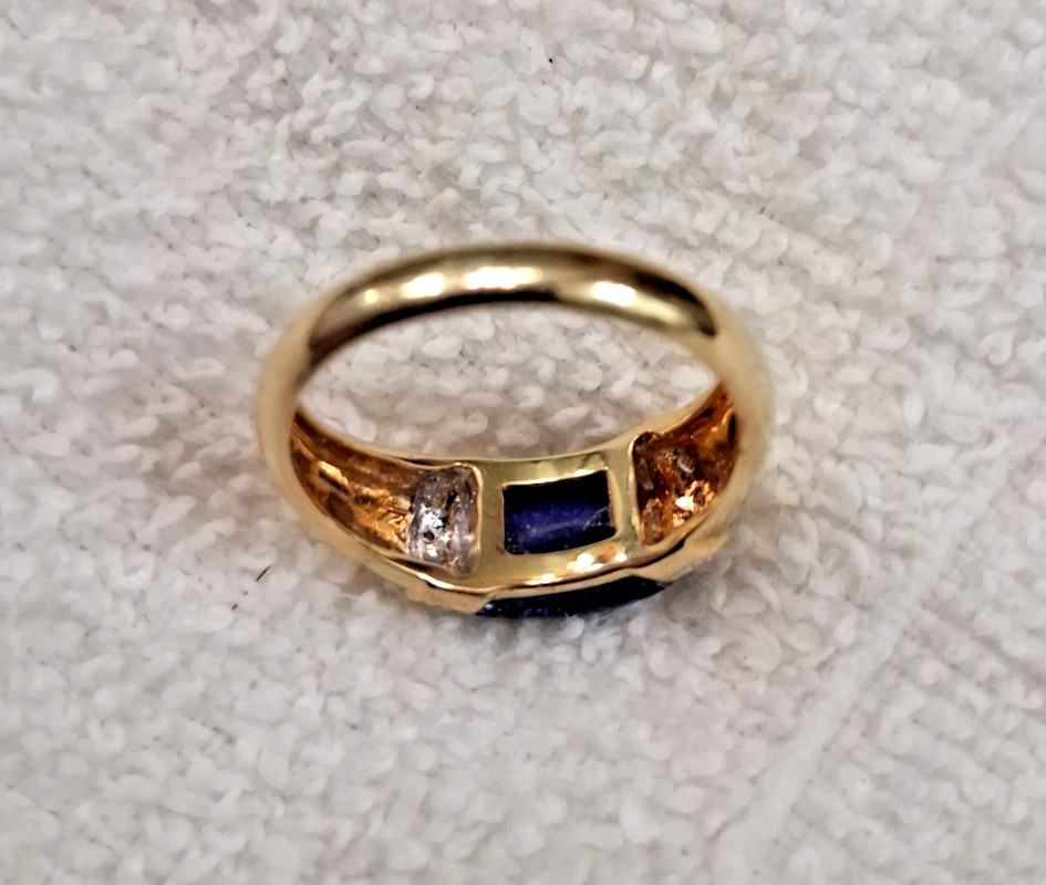 Ladies Blue Lapis 14k Solid Yellow Gold Ring with Diamonds Size 7