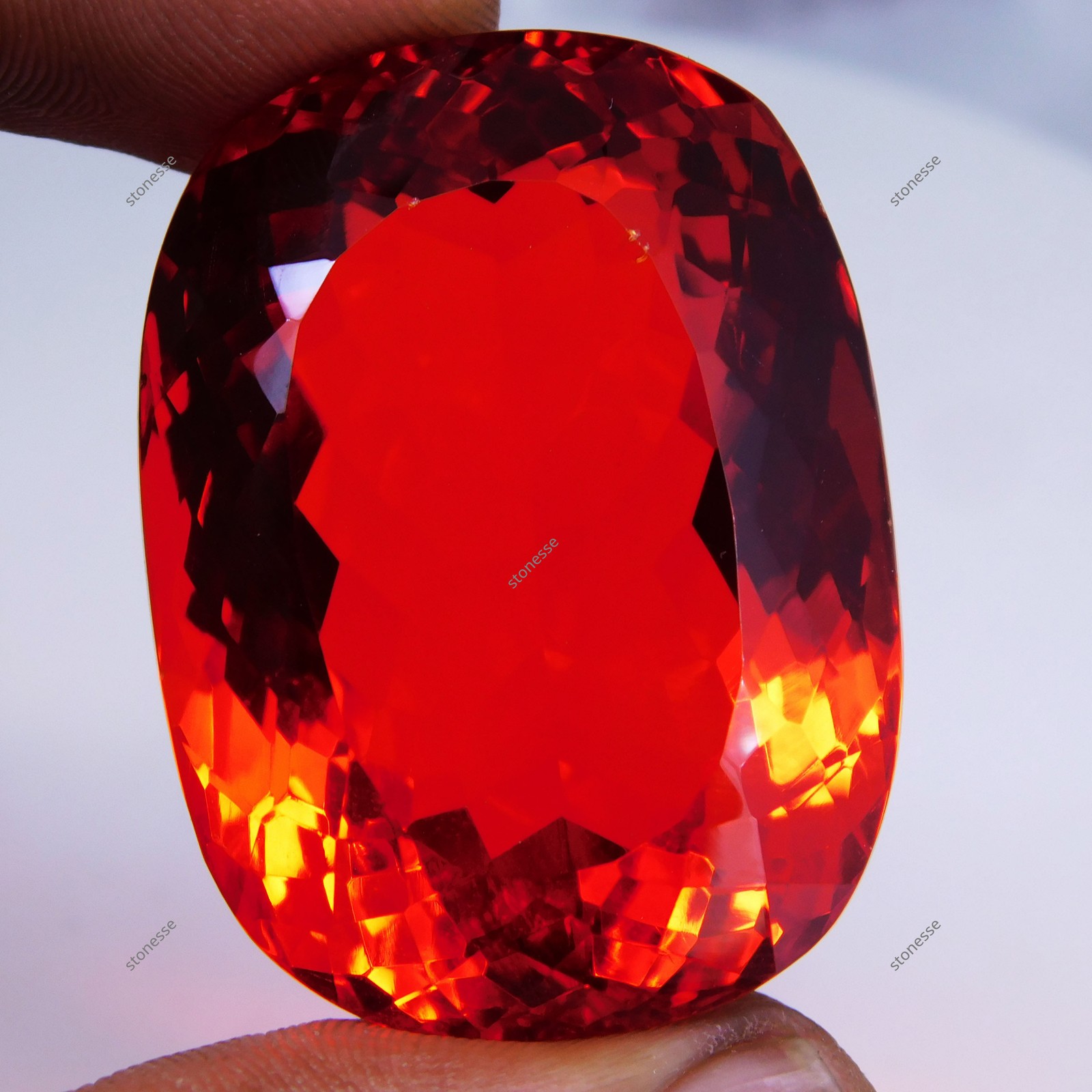Certified 209.70 Ct Natural Mexican Fire Opal Red Orange Cushion Loose Gemstone