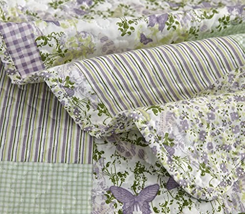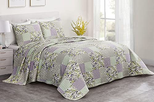 Daisy 3-Piece Printed Patchwork Quilt Set - King Purple Botanical Garden