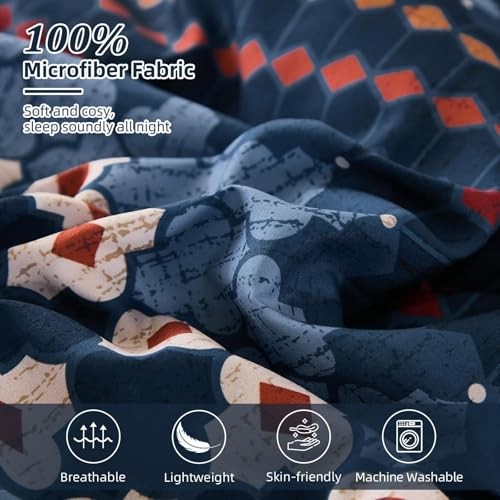 Navy Blue Comforter Size Set 7 Piece, Boho Striped Bed Queen Navy Blue Striped