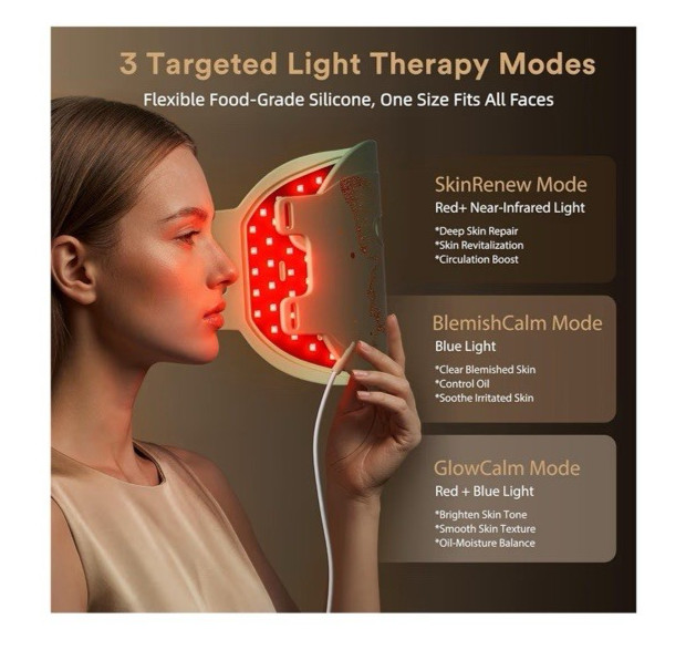 EUARNE LED Face Mask Light Therapy 324 LEDs 4 Modes New Sealed