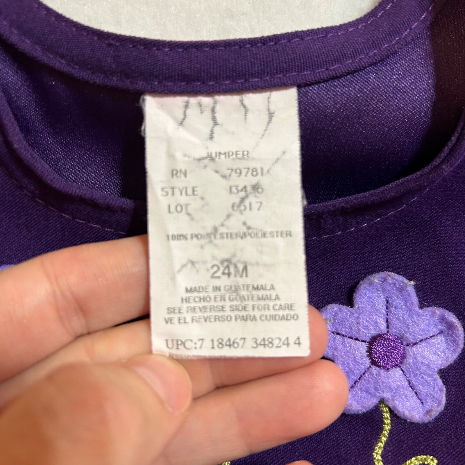 как выглядит Vintage Girls Dress 24 Months Jumper Winter Purple Flower Applique фото