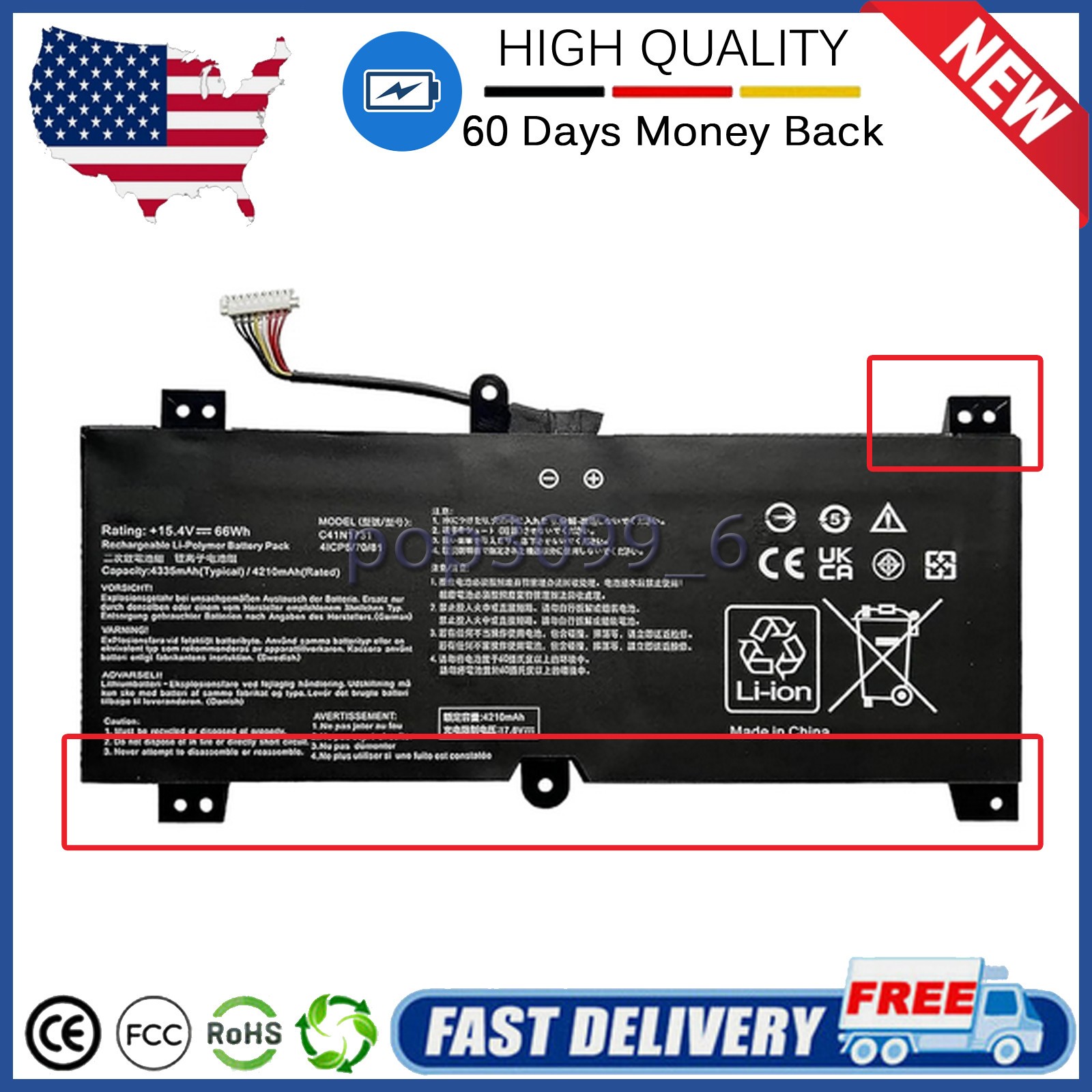 как выглядит C41N1731 Battery for Asus ROG Strix SCAR II / Hero II G515GV G515GW G715GV фото
