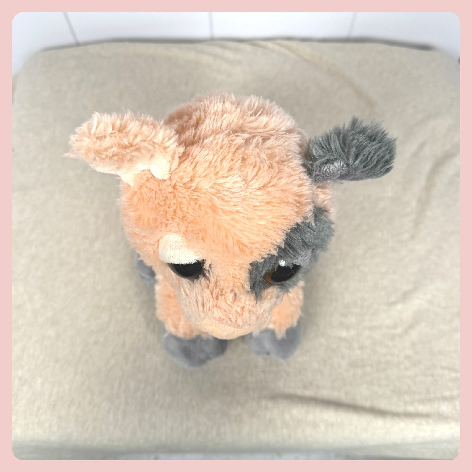 как выглядит Aurora Plush Cow Stuffed Animal Peach Gray Big Eyes Spotted EUC Collectible Toy фото