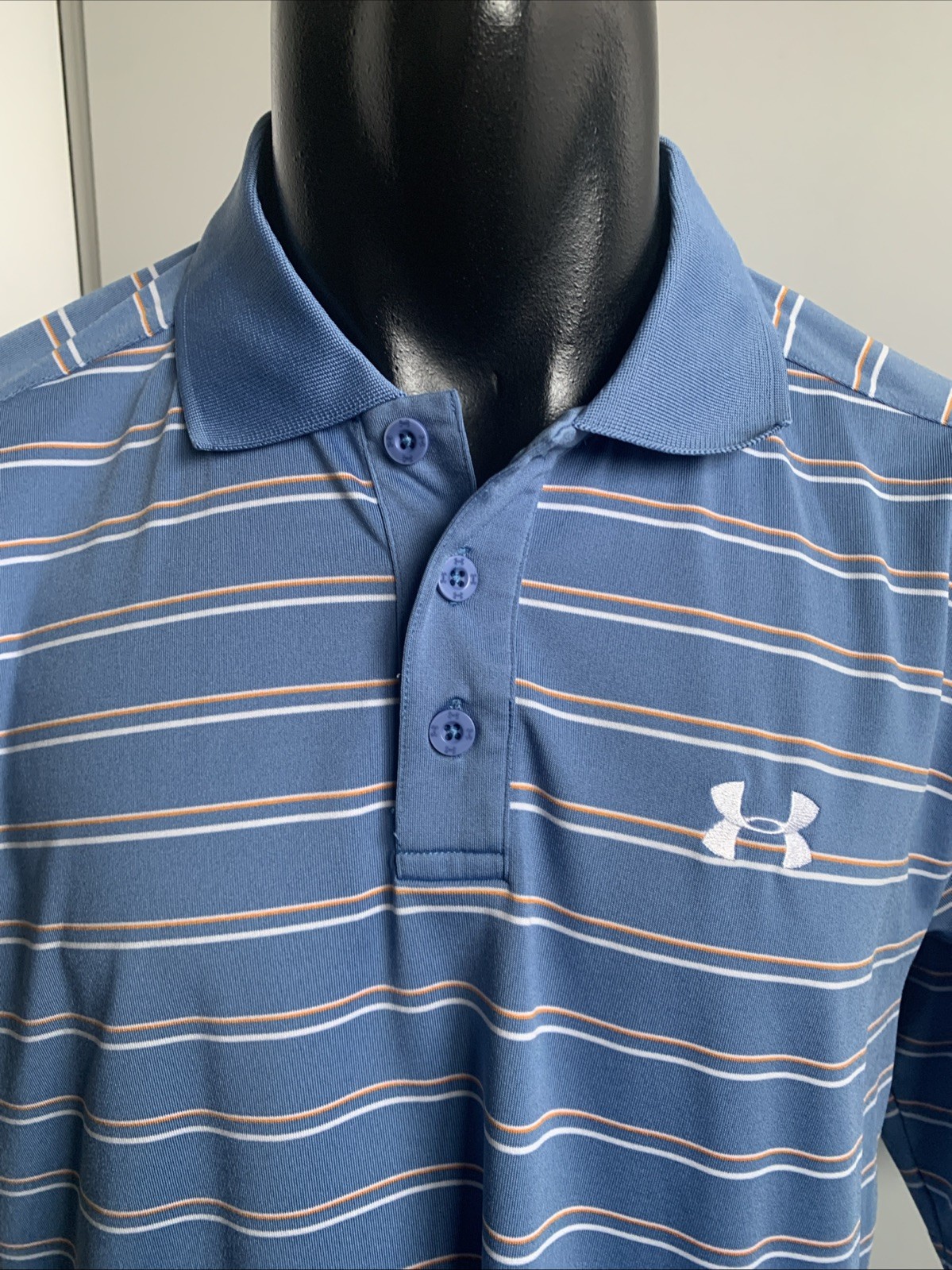Under Armour men s size Medium short sleeve blue striped polo shirt