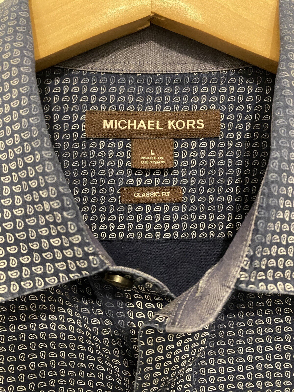 как выглядит Michael Kors Mens Large Classic Fit Button Down Blue Long Sleeve Casual Shirt фото