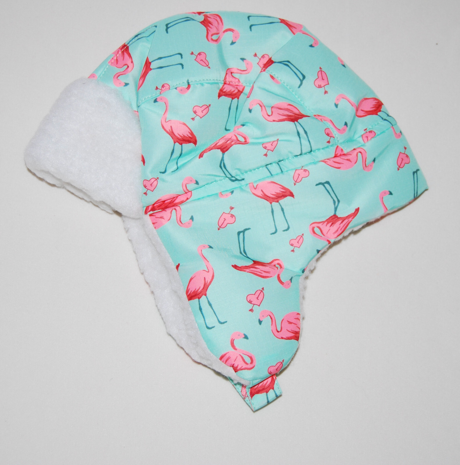 NWT BAVST Infant Girl Mint Green Flamingo Print Trapper Sherpa Lined Hat 6-12 M