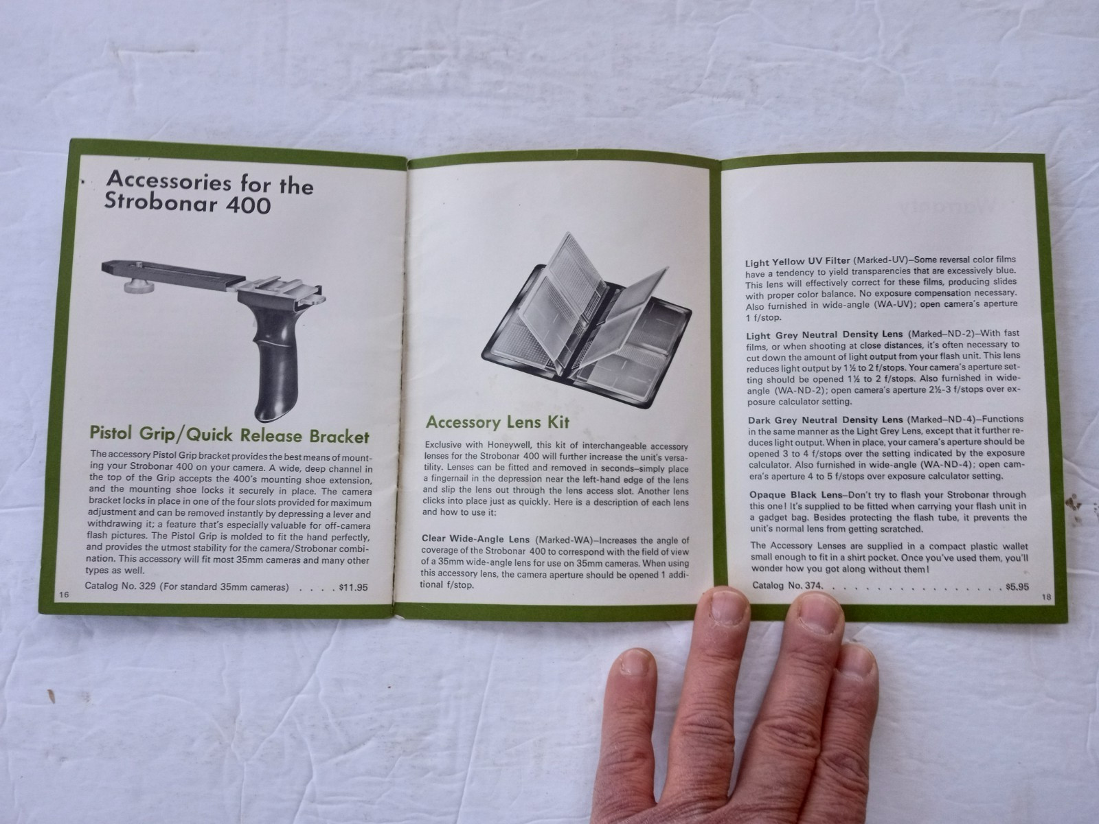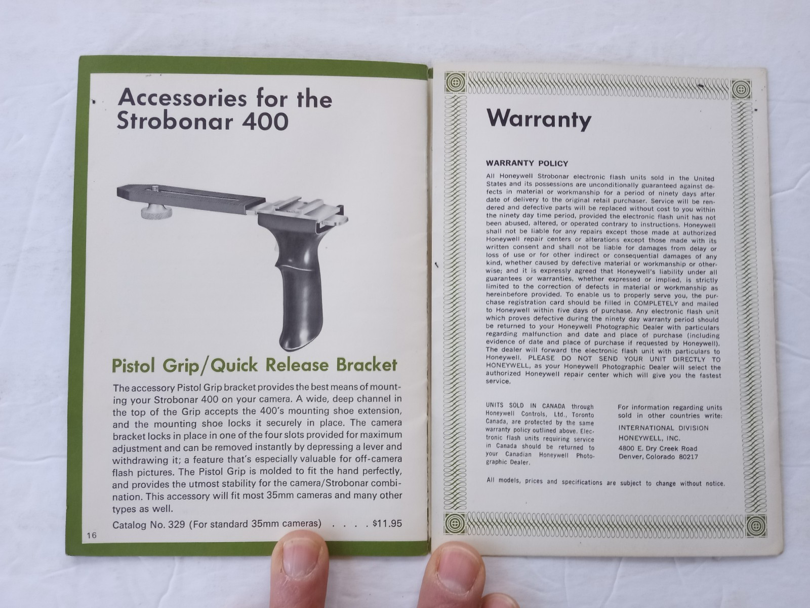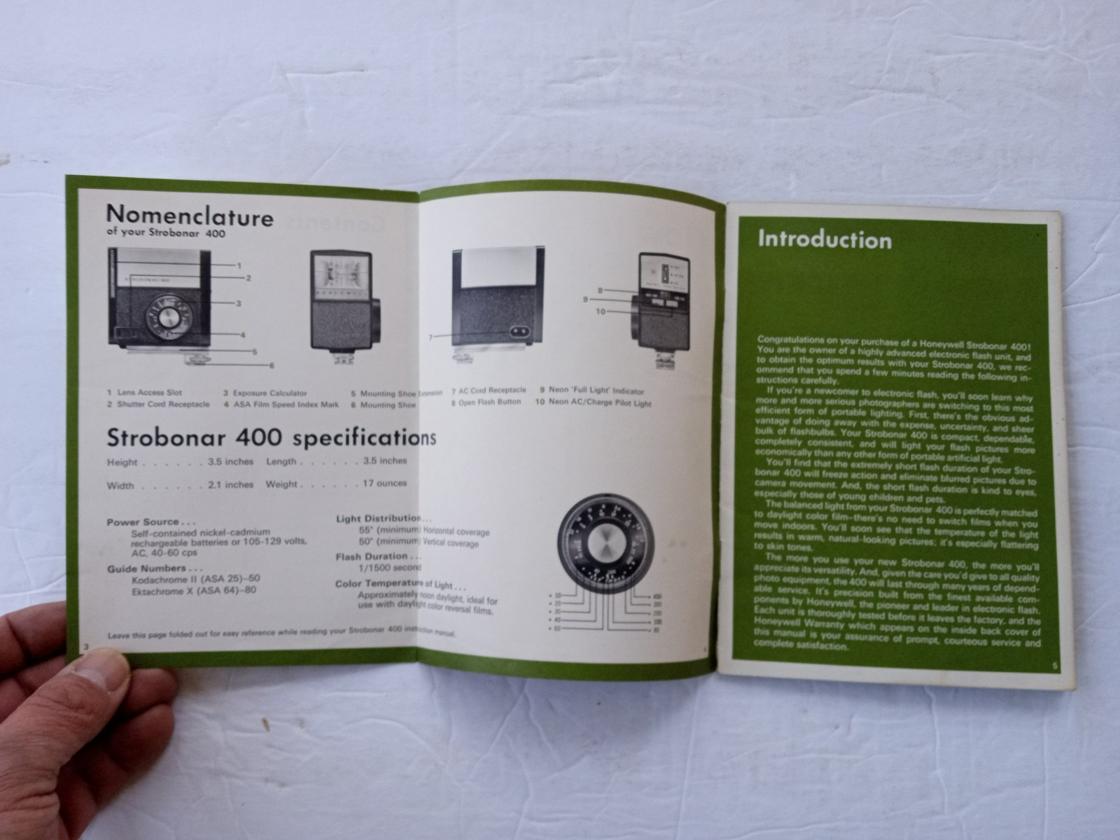 HONEYWELL STROBONAR 400 Camera Flash Instruction Manual 1968 User Guide
