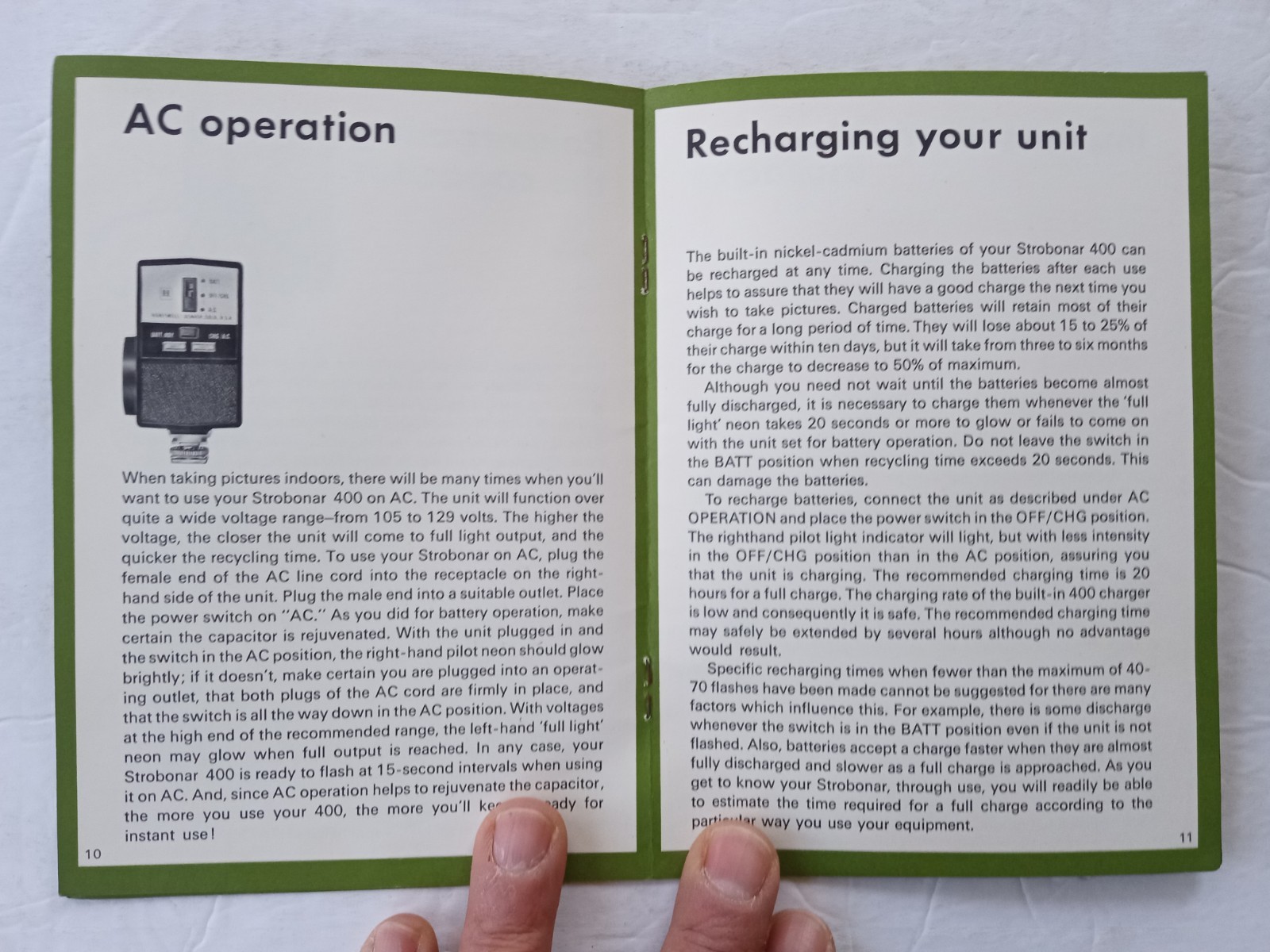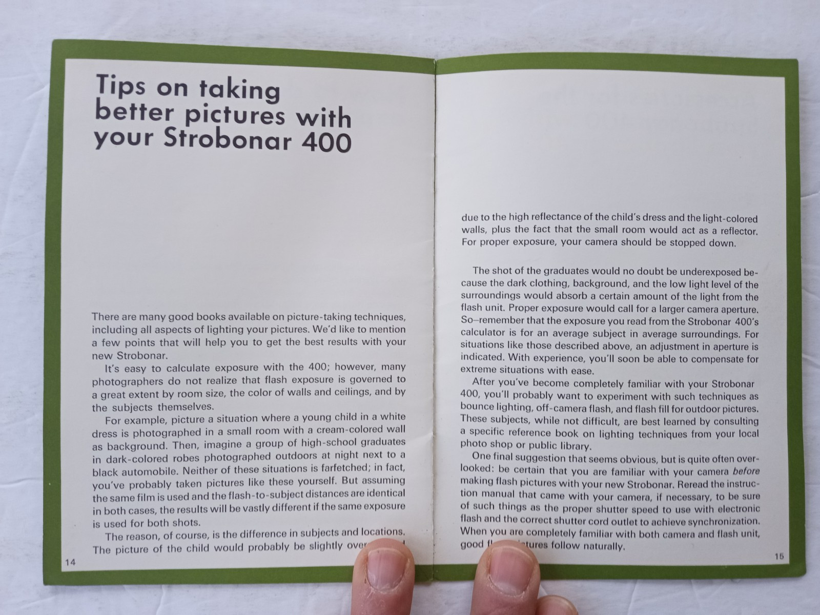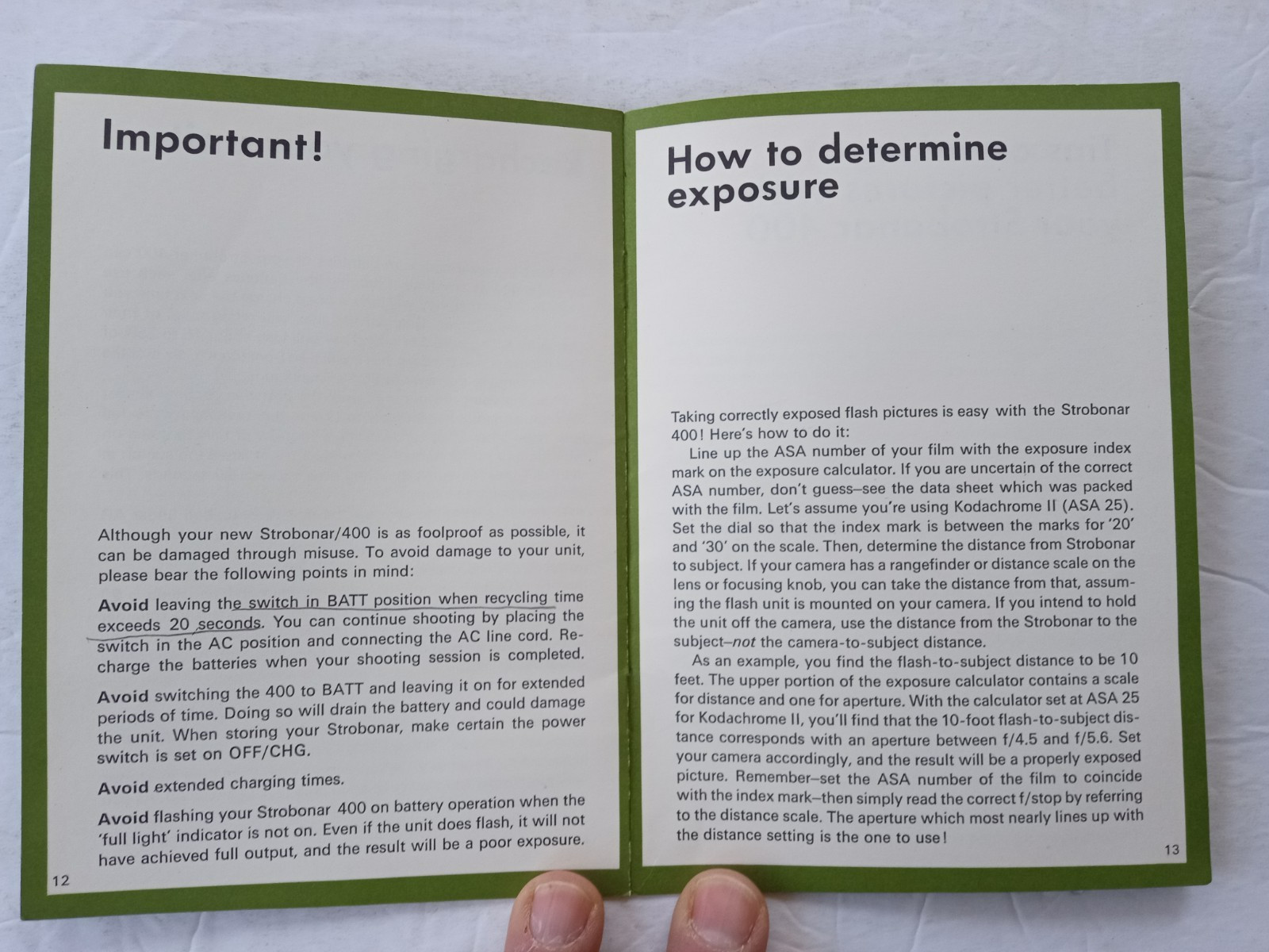 HONEYWELL STROBONAR 400 Camera Flash Instruction Manual 1968 User Guide