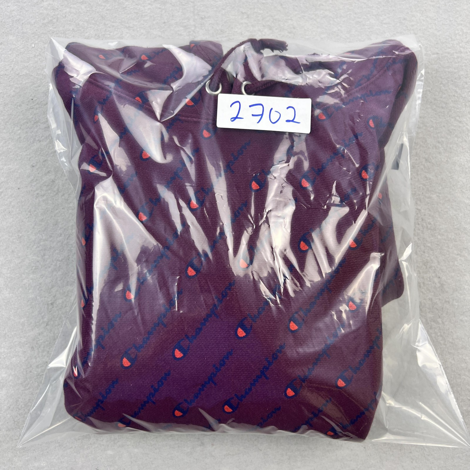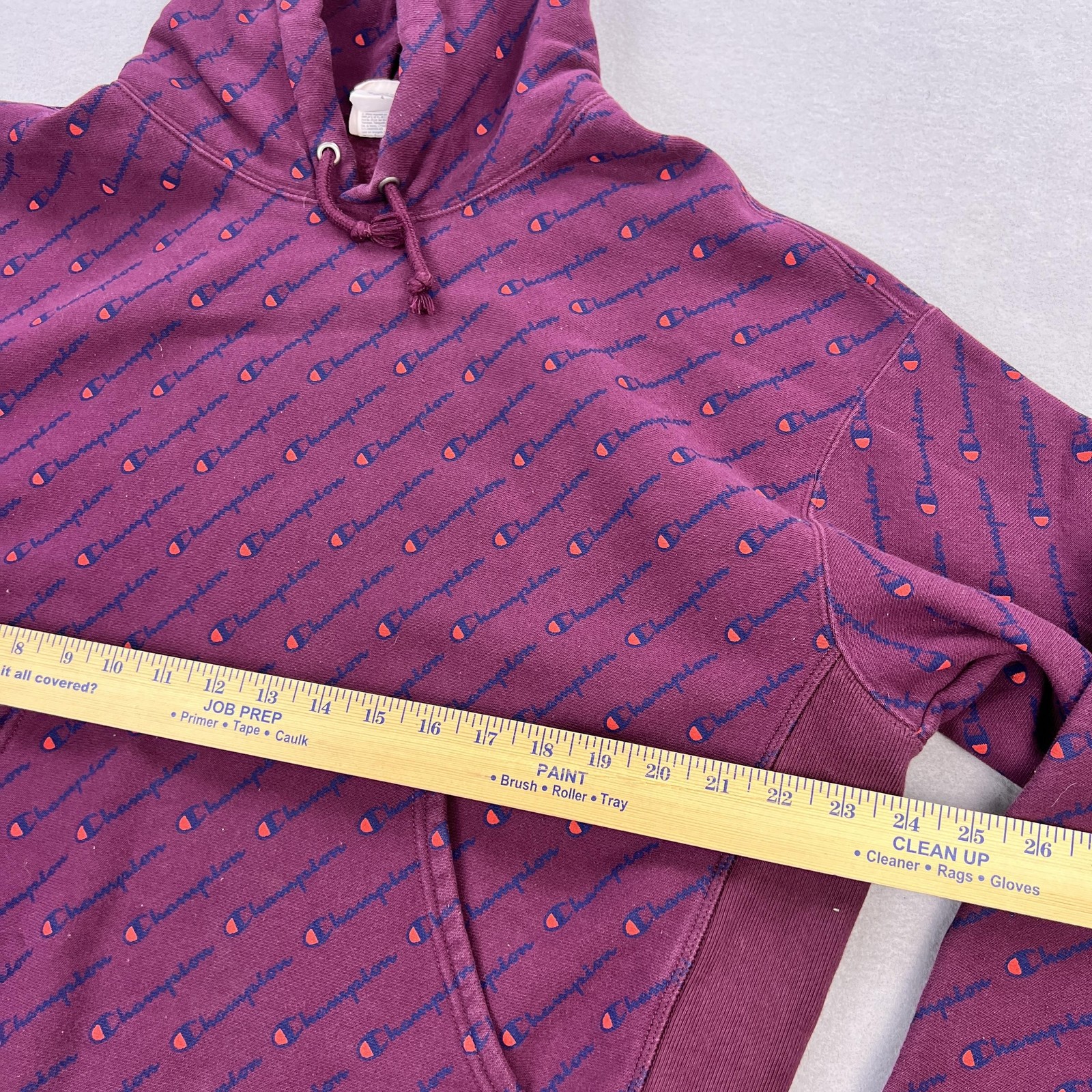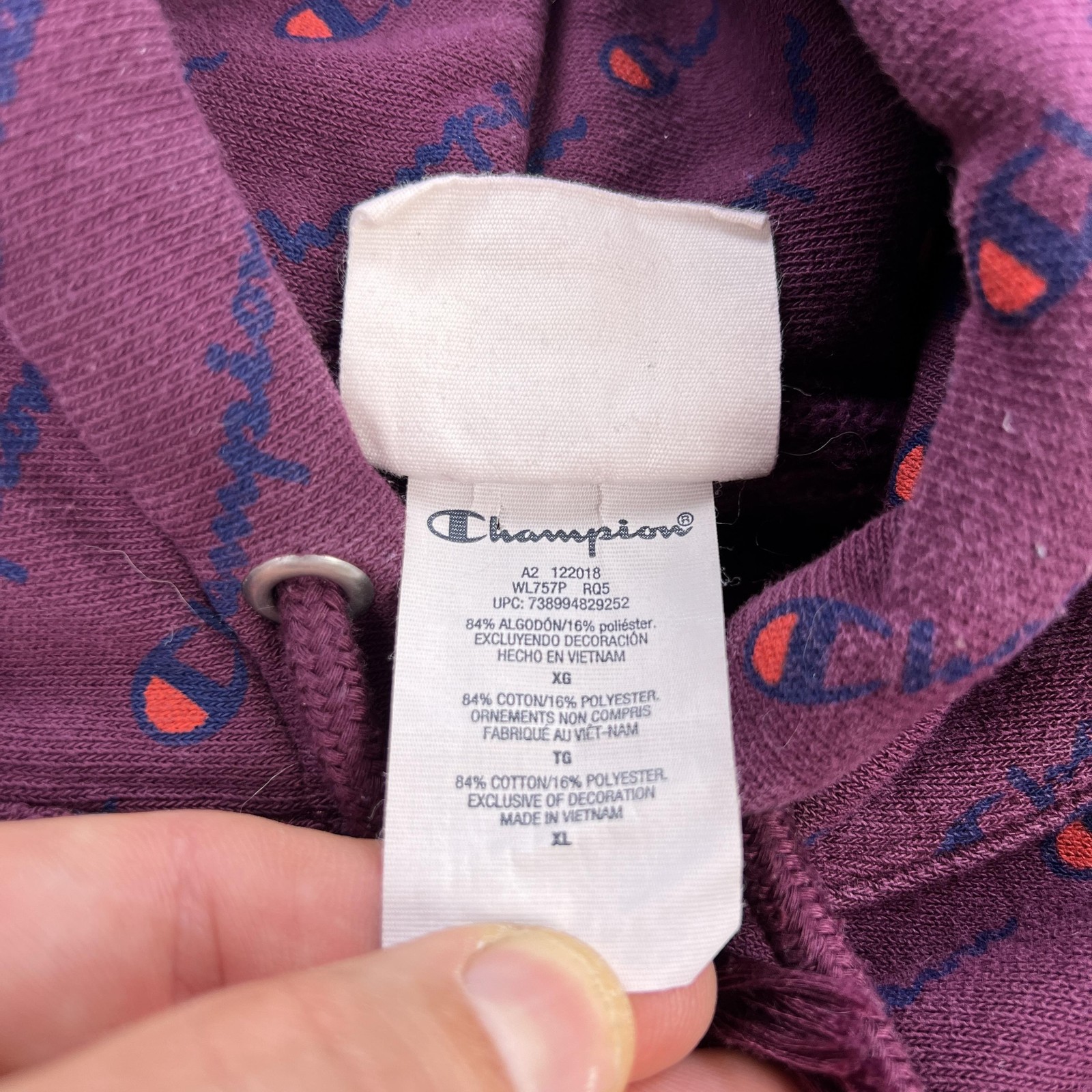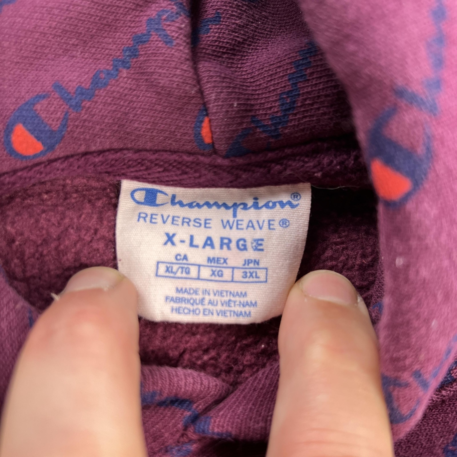как выглядит Champion Hoodie Mens XL Purple Reverse Weave Allover Logo Fleece Sweatshirt фото