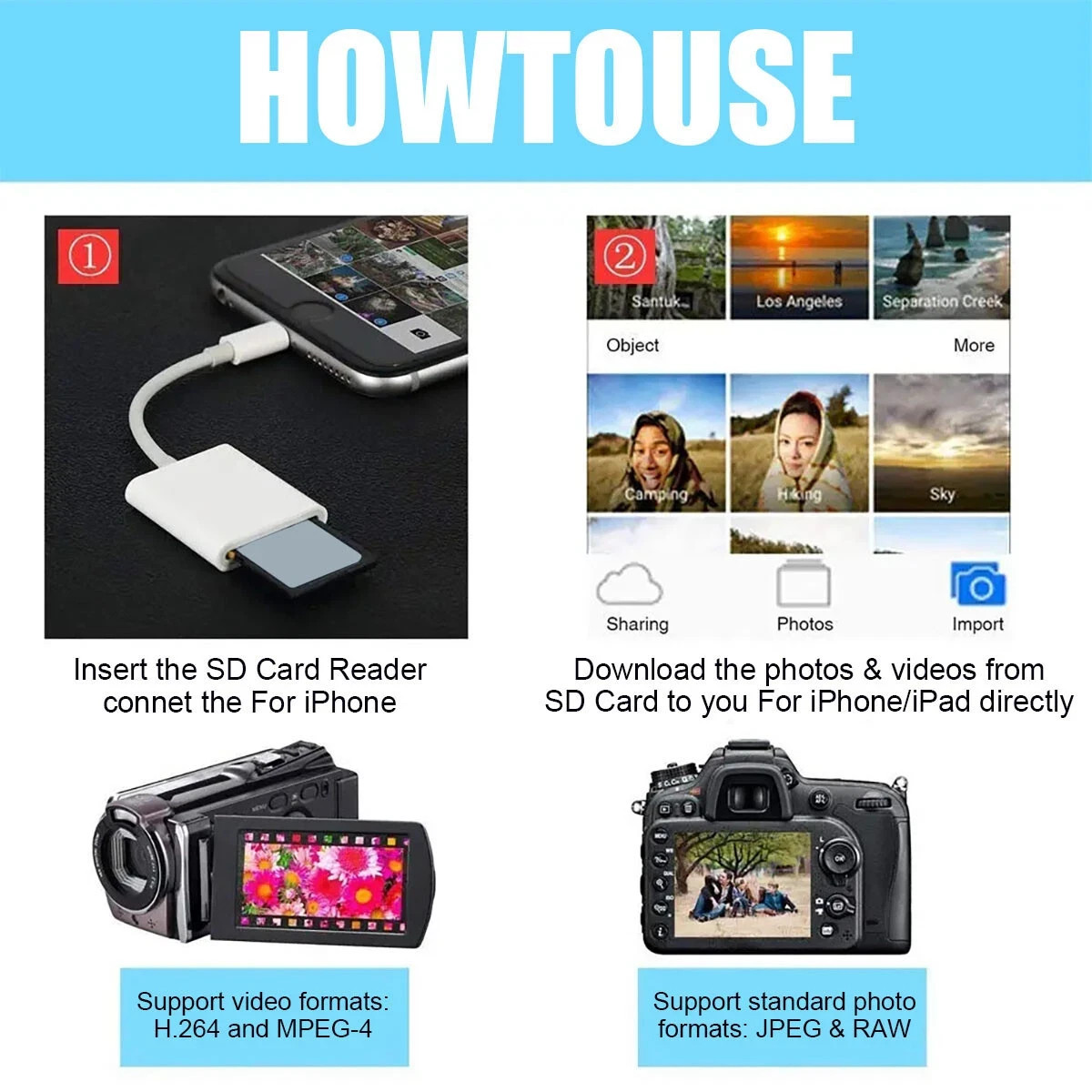 2in1 Micro SD/TF Dual Slot Memory Card Reader for iPhone iPad Camera Adapter Lot