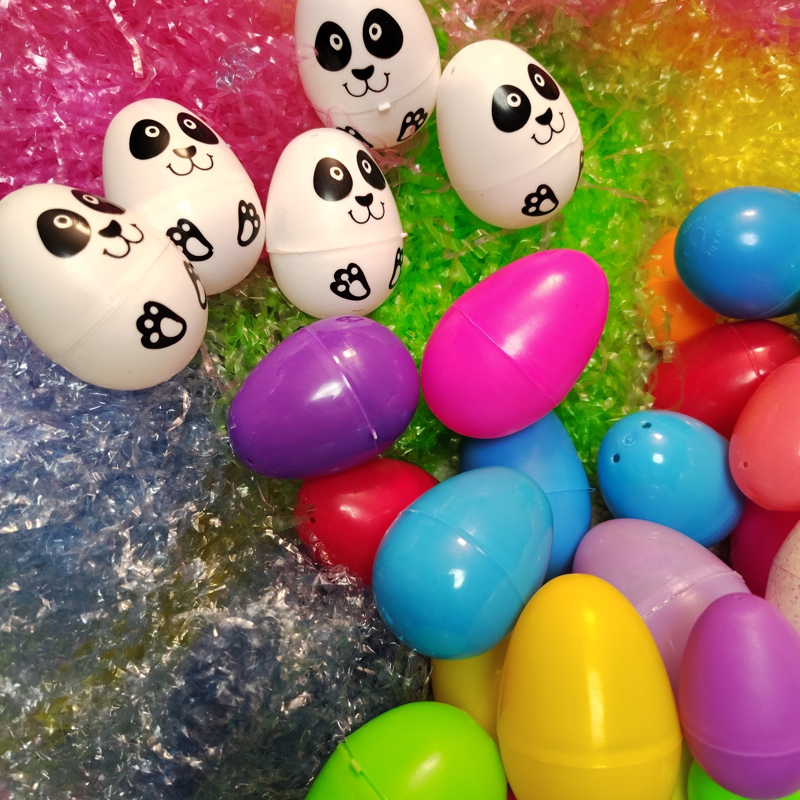 как выглядит Easter Eggs Mixed Lot of 70 Plastic Fillable Colorful w/ Grass For Baskets фото