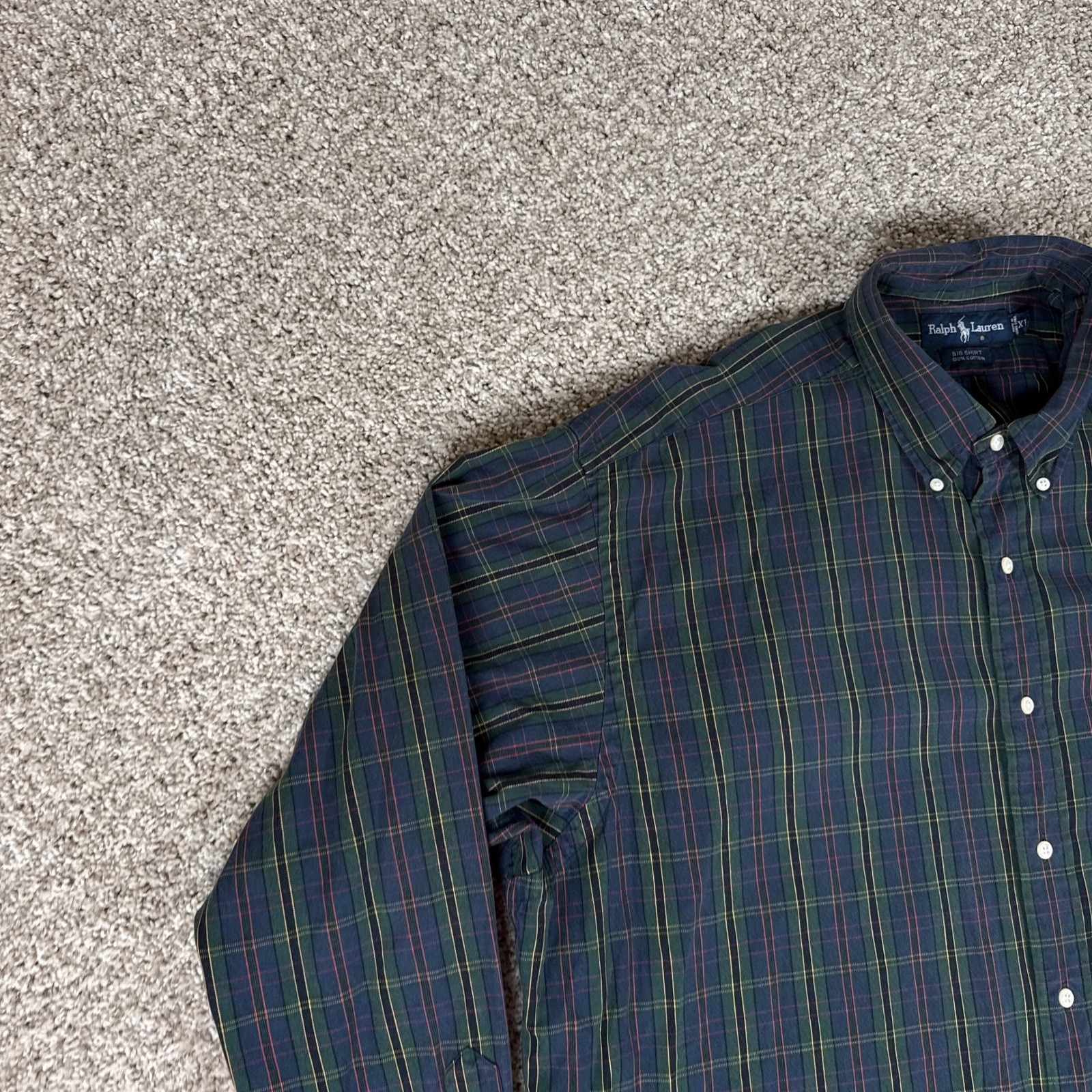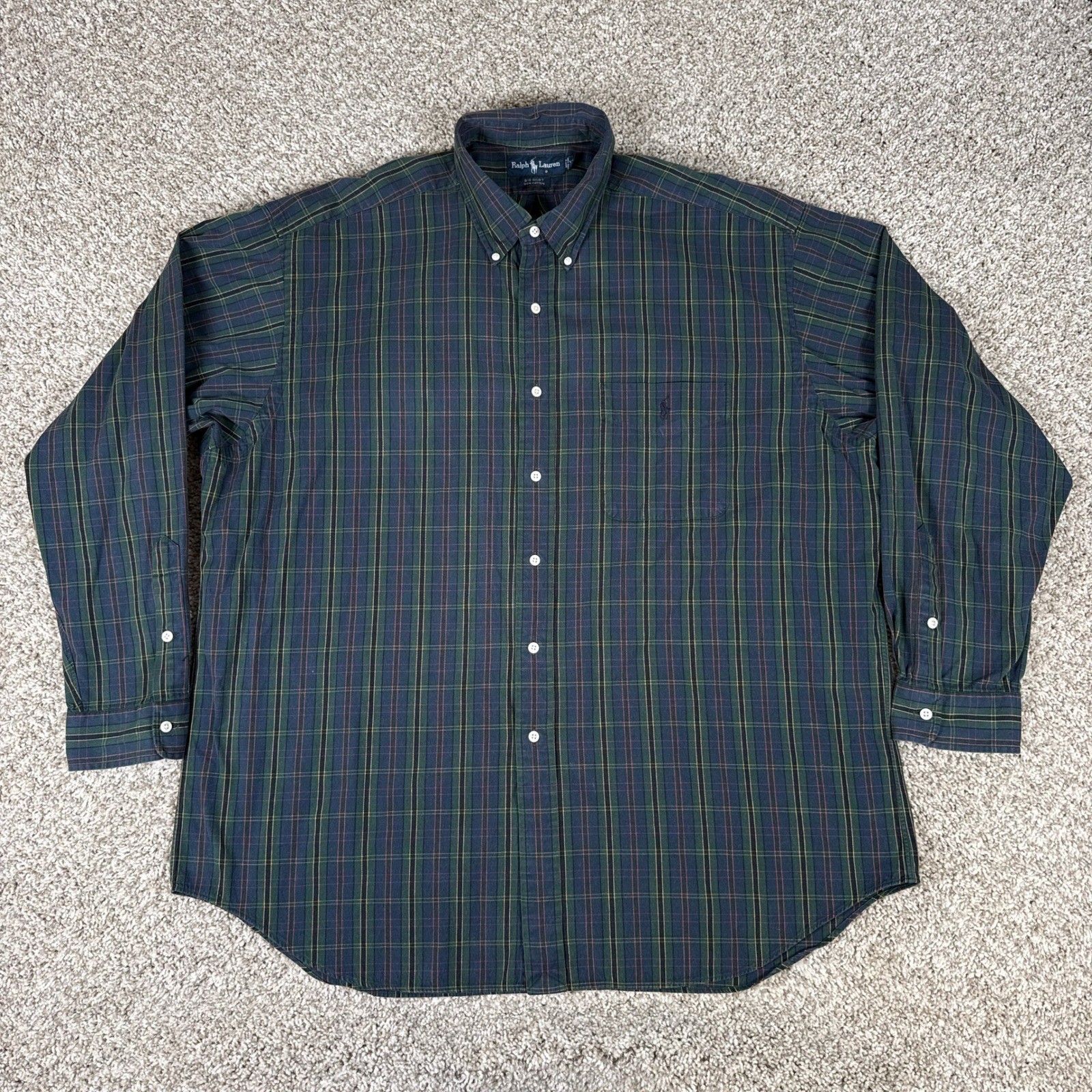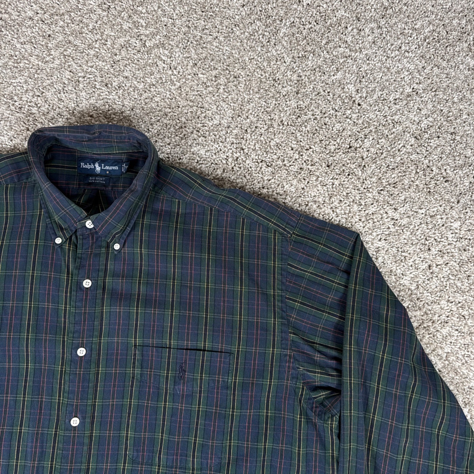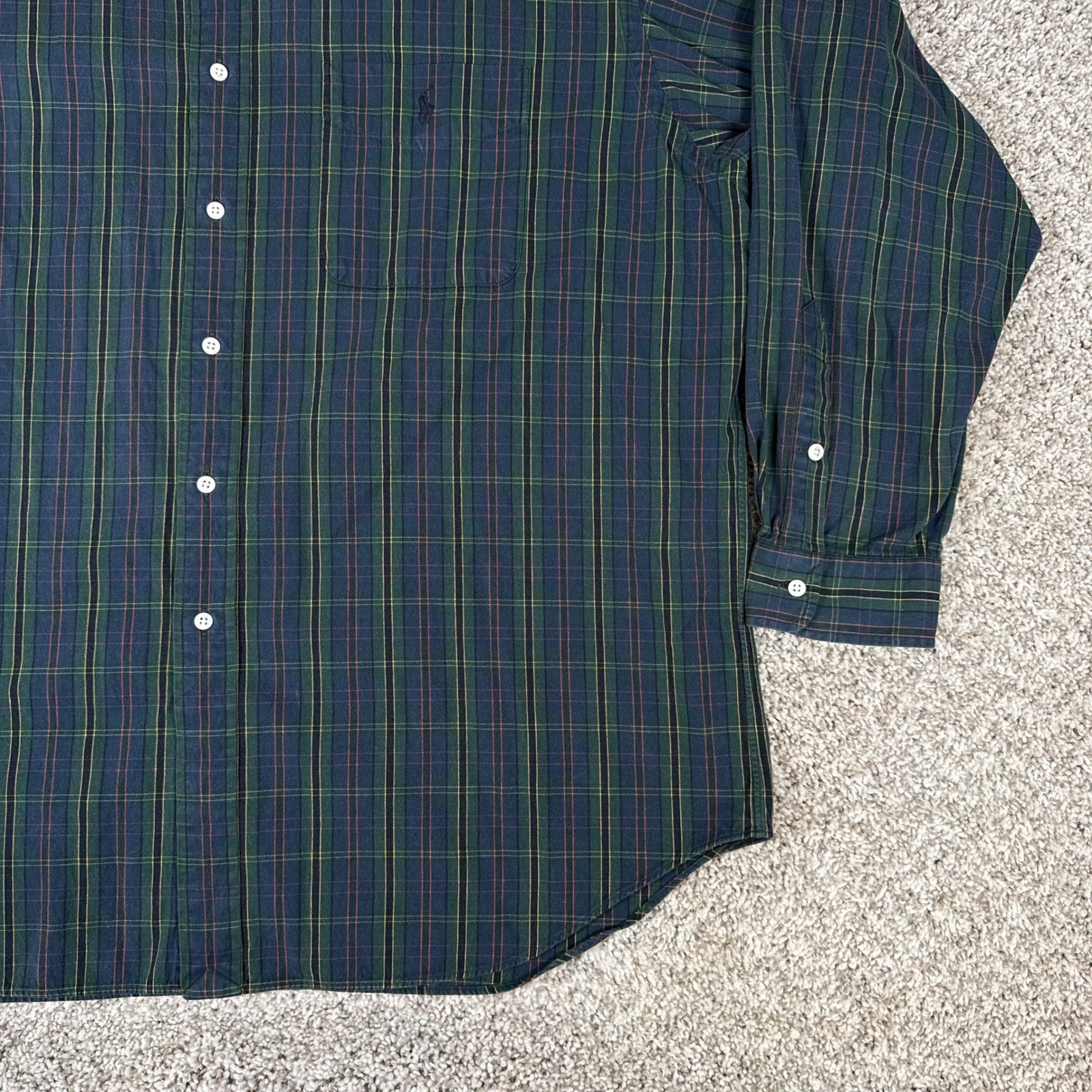 Vintage Ralph Lauren Big Shirt Mens XL Green Blue Plaid Button Down Long Sleeve