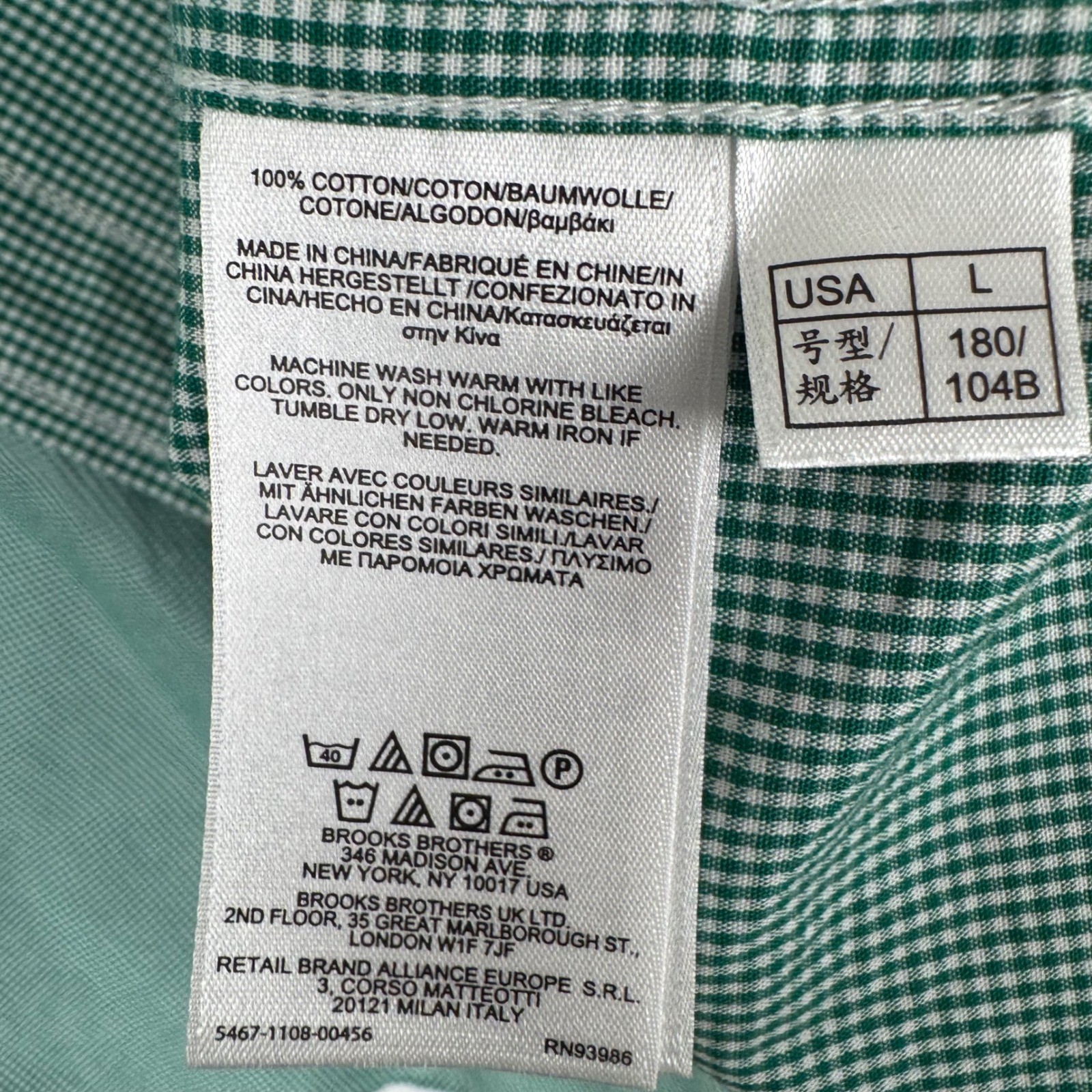 как выглядит Brooks Brothers 346 Gingham Micro Check Cotton Shirt Mens L Green Button Down фото