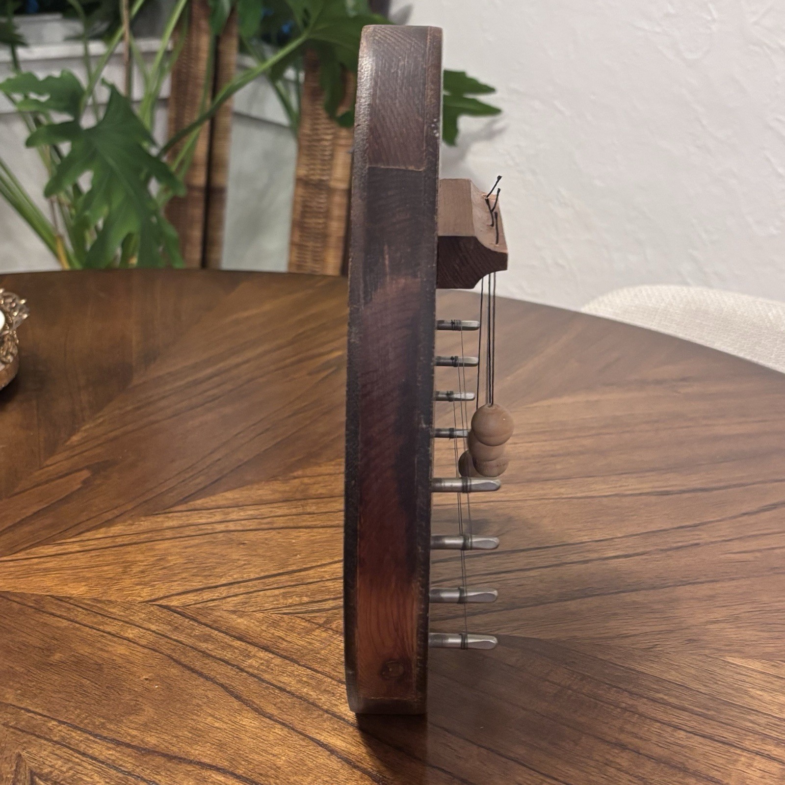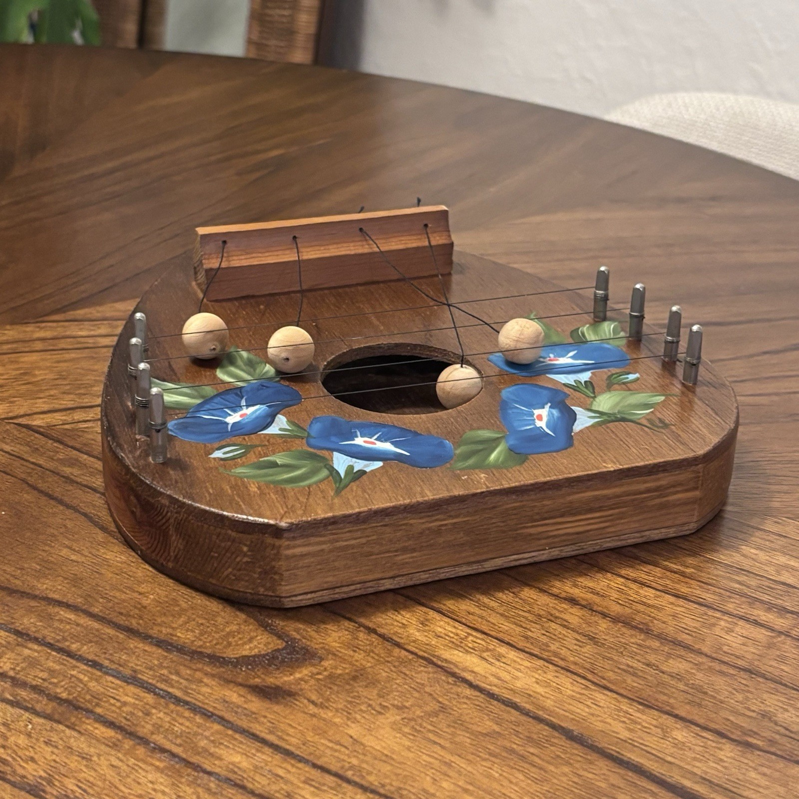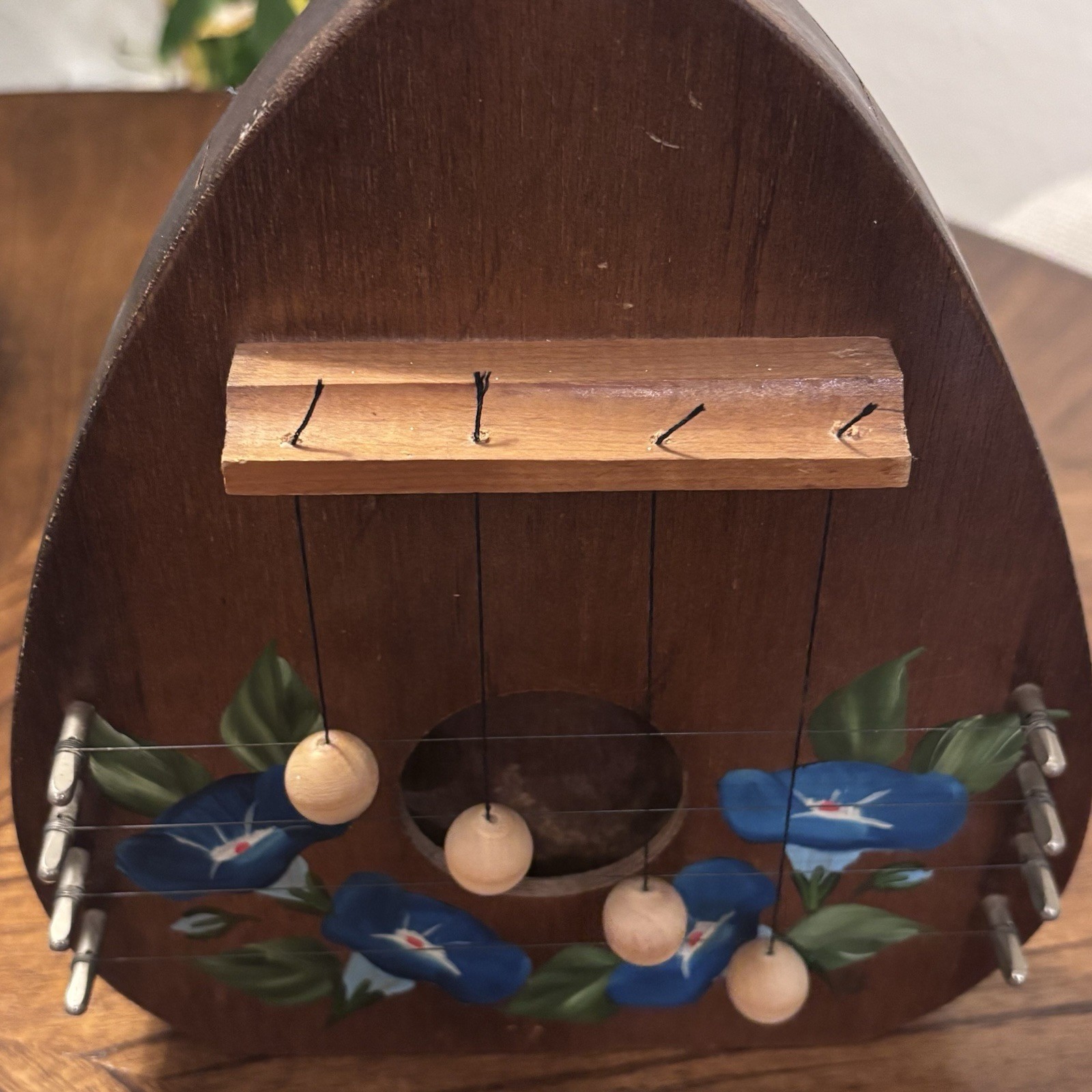 как выглядит Vintage Wood Door Harp Homegrown Woods Things 4 string handpainted blue flower фото