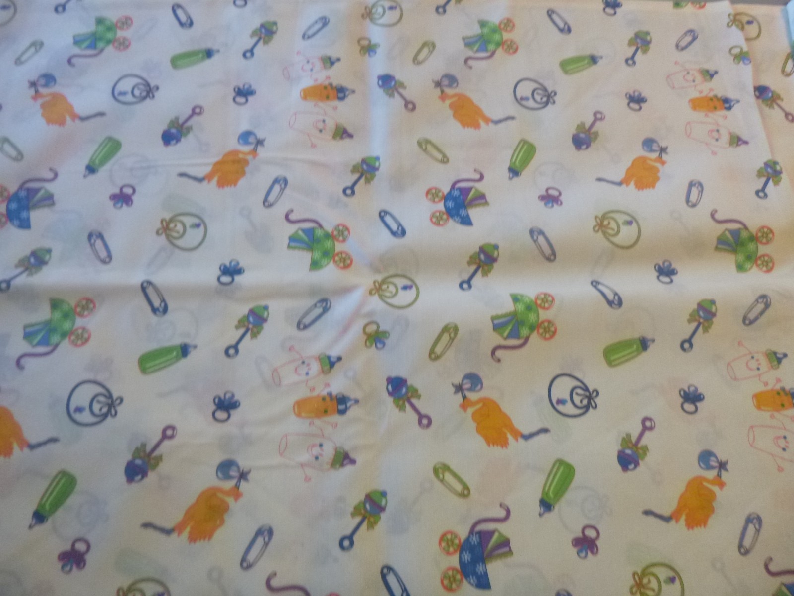 Stork and Baby Items on Cream Colored Cotton Fabric 44 Wide x 36 long