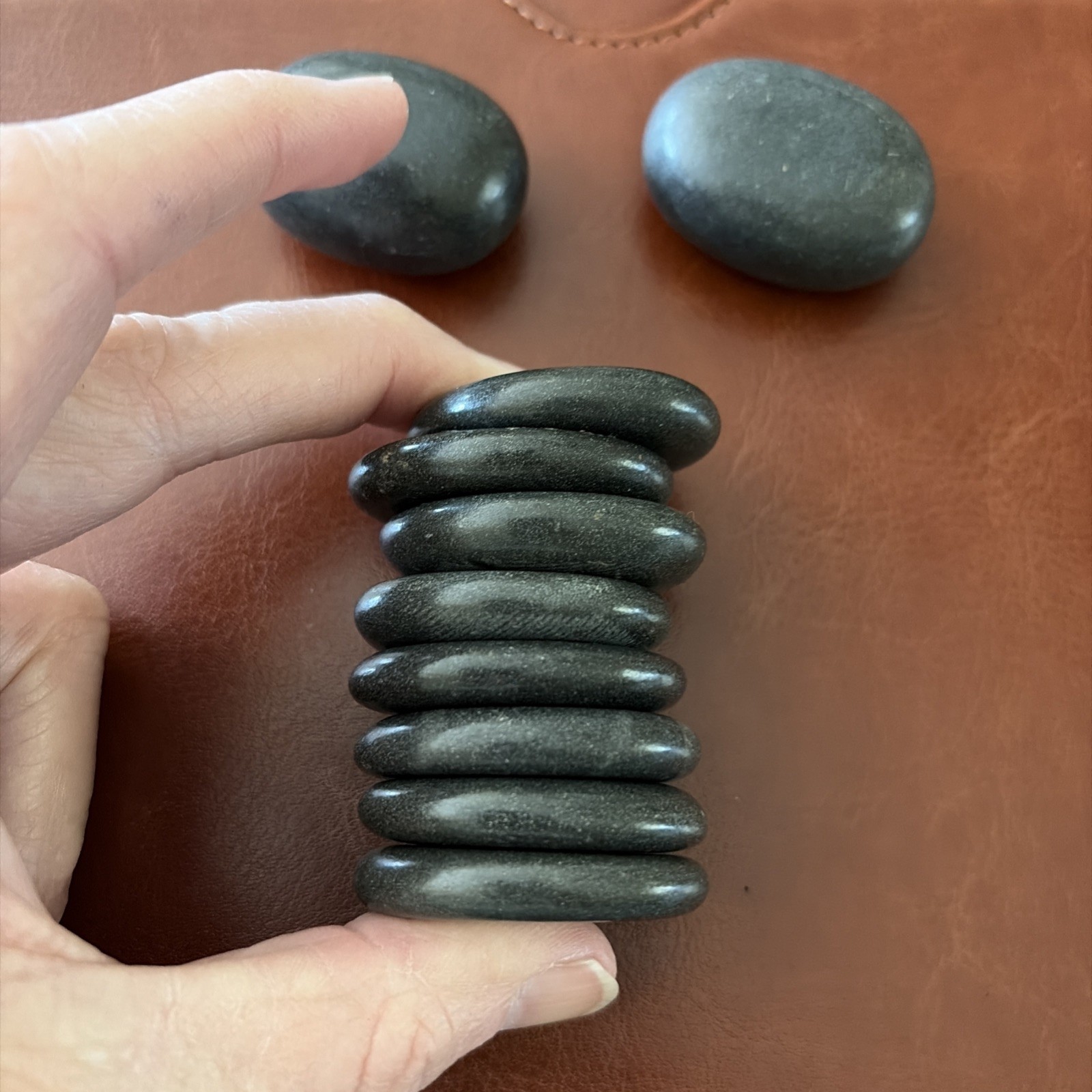 как выглядит Maxdee Massage Stones 8 Flat Oval 2 Oval Hot Rocks Professional Home Spa Relax фото