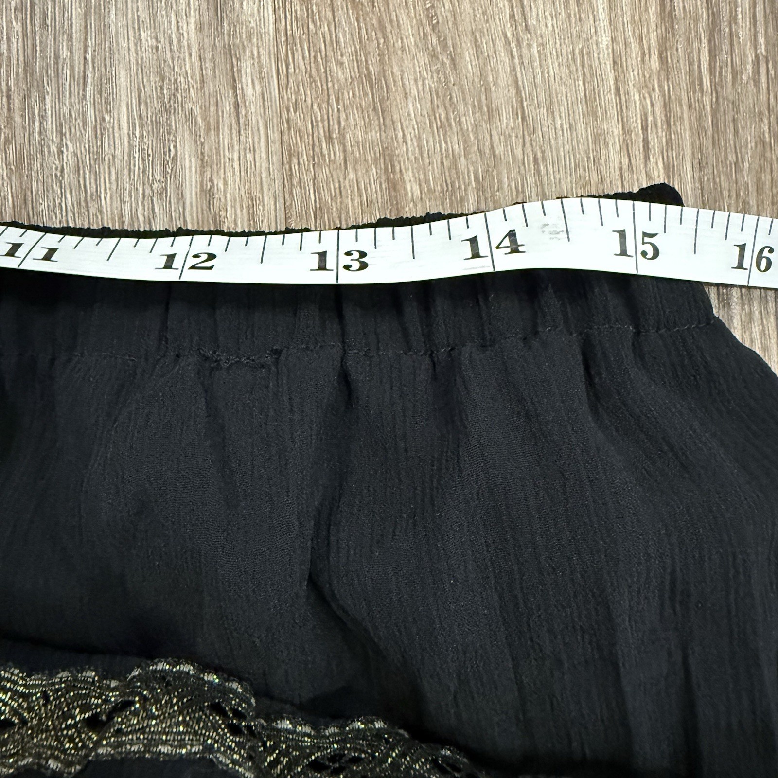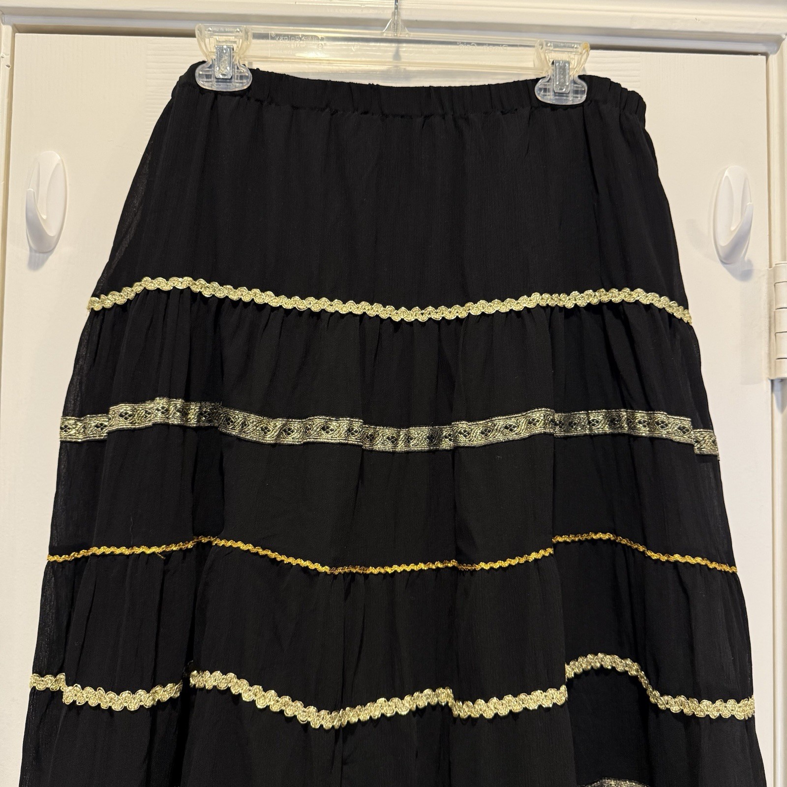 как выглядит Vintage Tiered Maxi Skirt Size L Black Gold Metallic Lace Boho Gypsy Peasant фото