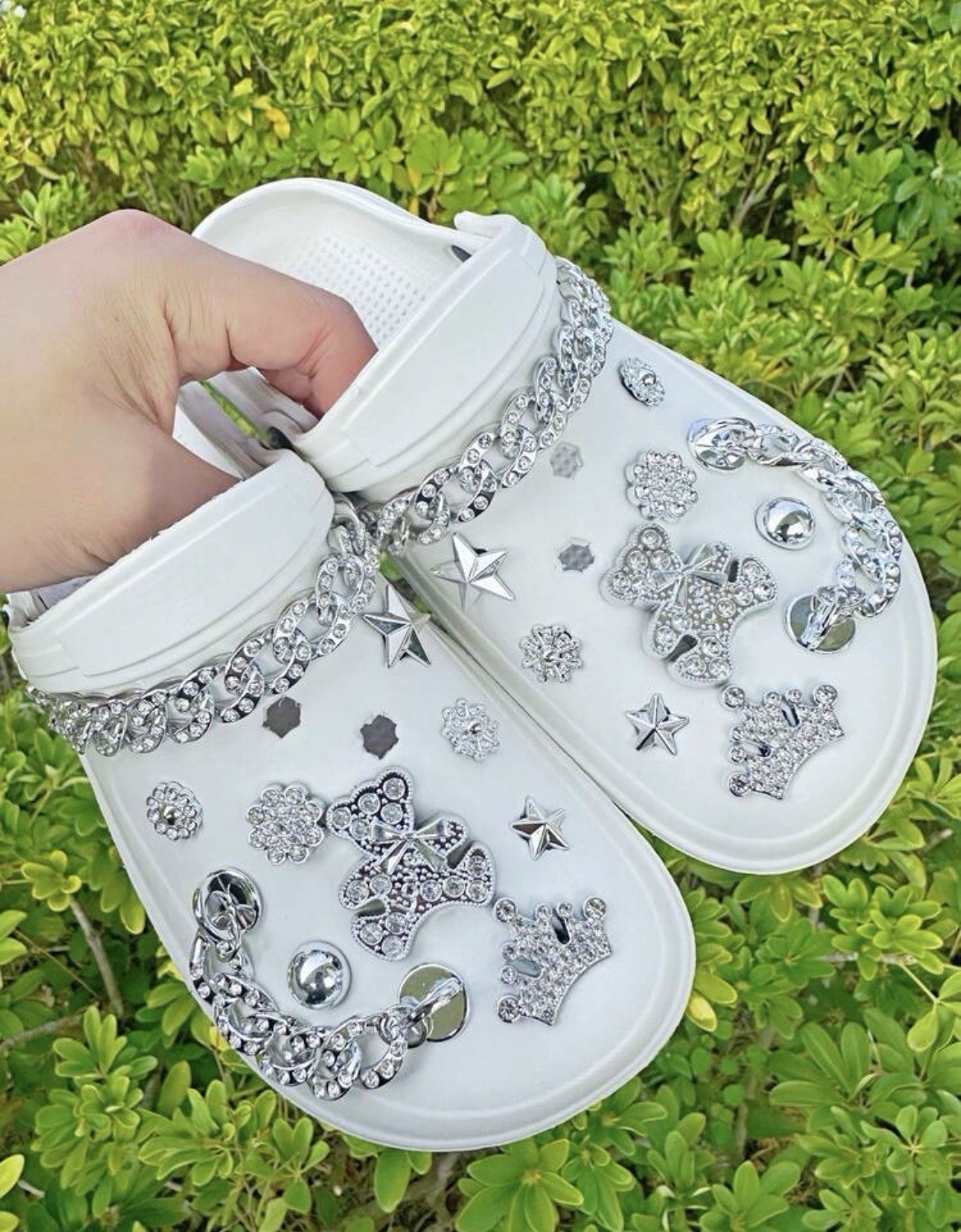 как выглядит Gold Silver Rhinestone Crown Star Flower Shoe Charms for Women s Croc Sandals фото