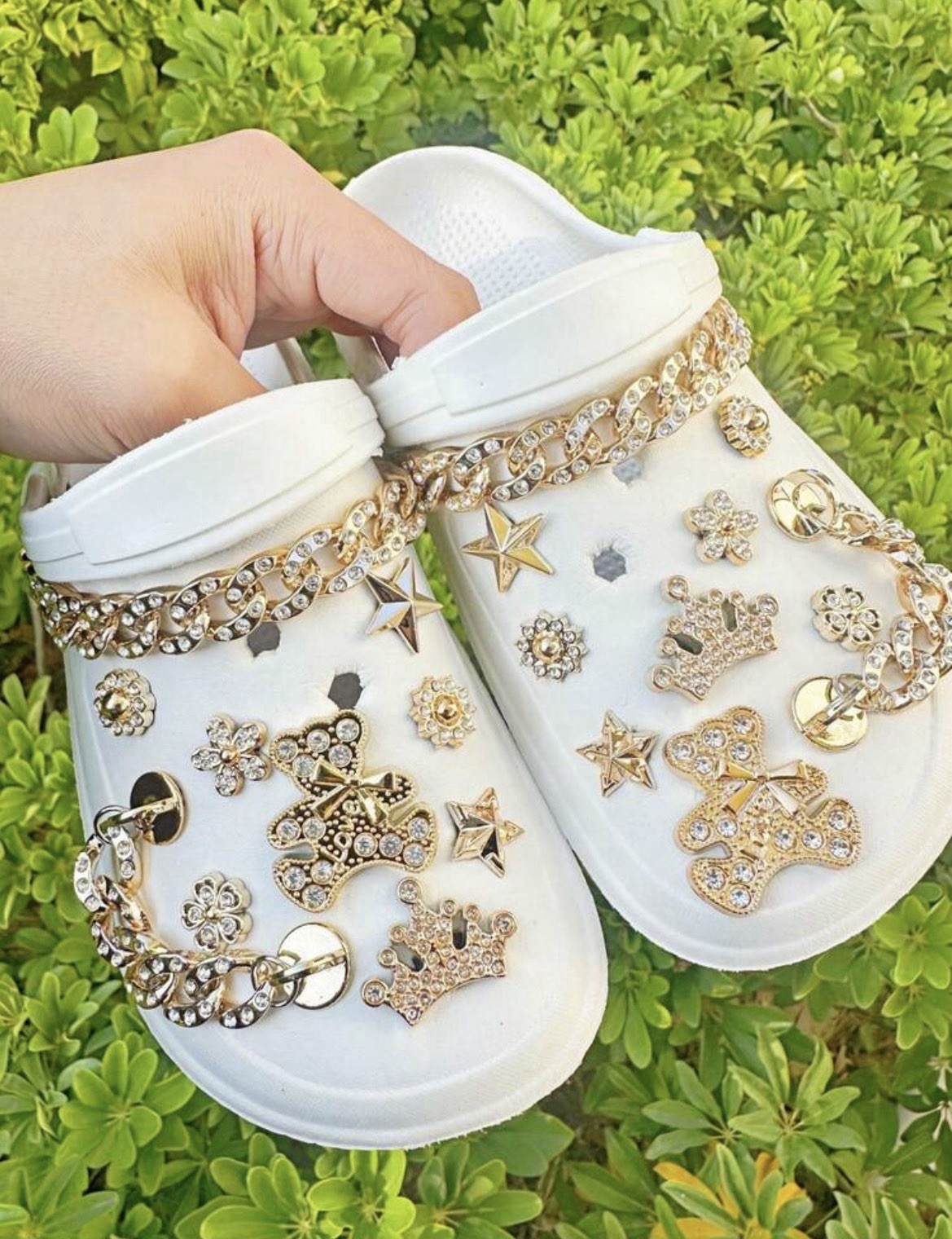 Gold Silver Rhinestone Crown Star Flower Shoe Charms for Women s Croc Sandals