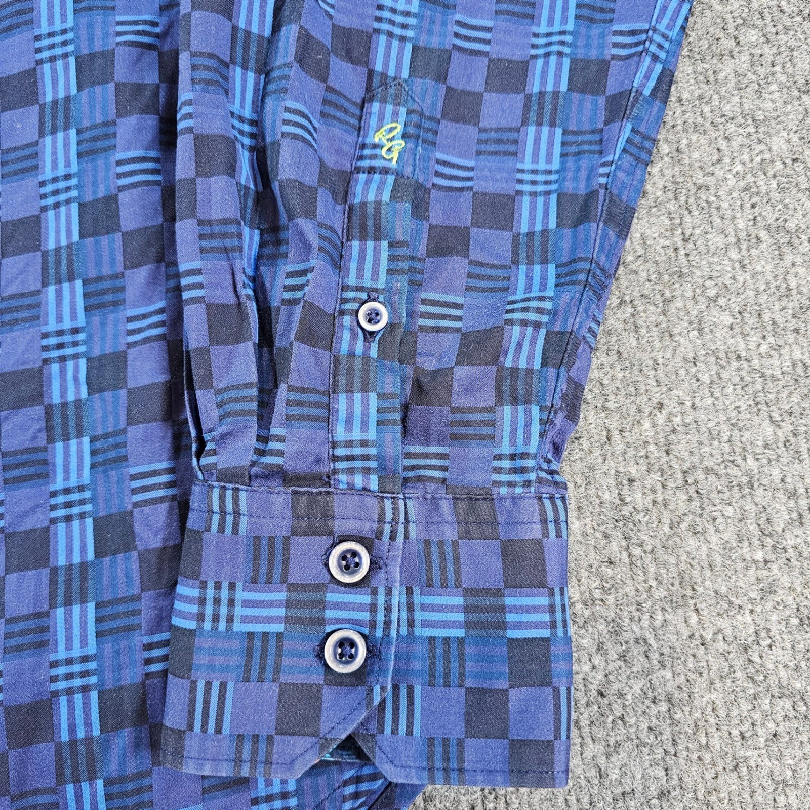 Robert Graham Men's Large Blue Checker Button Down Shirt Classic Fit Long Sleeve