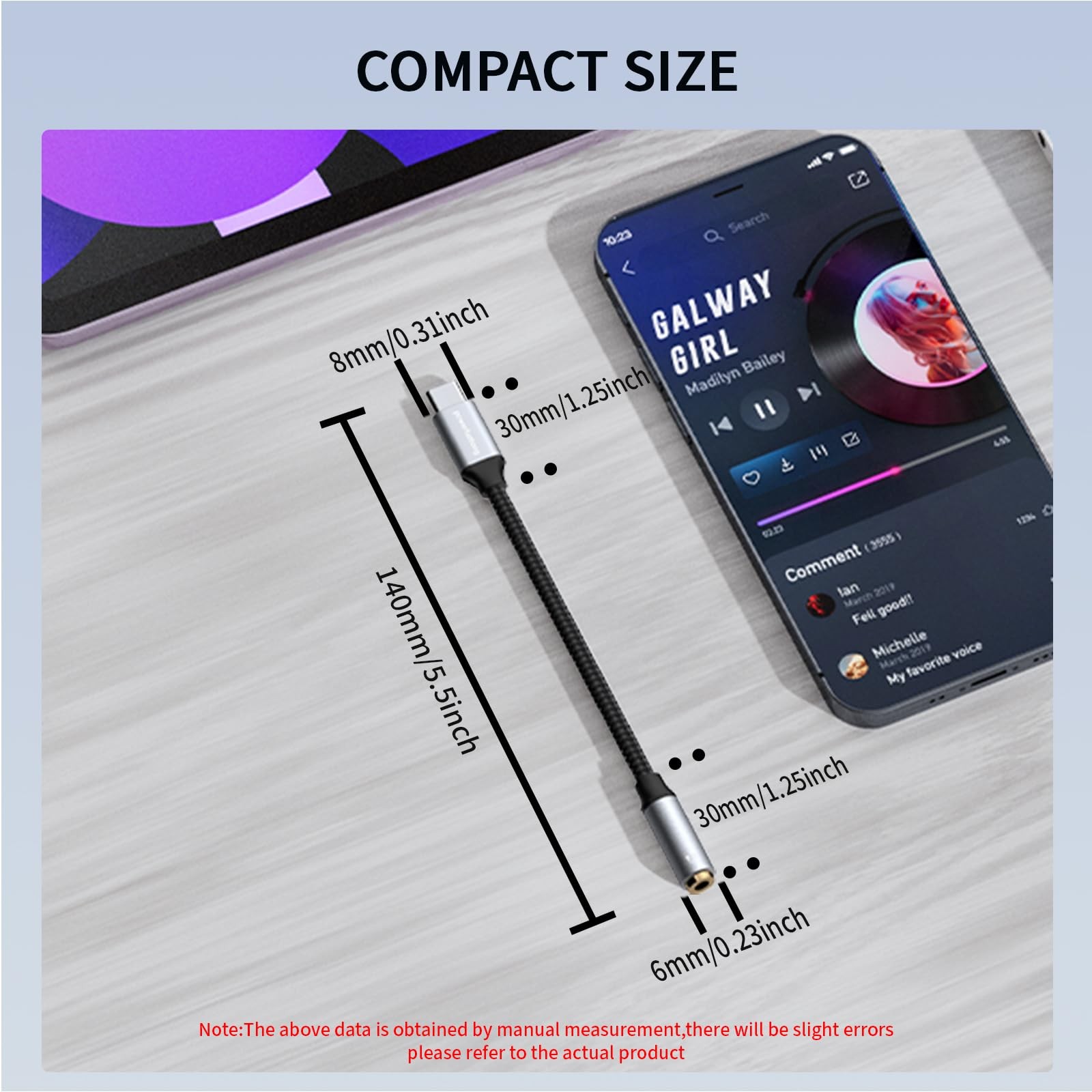 USB C to 3.5mm Female Headphone Jack Adapter Aux Audio Dongle for iPhone Samsung
