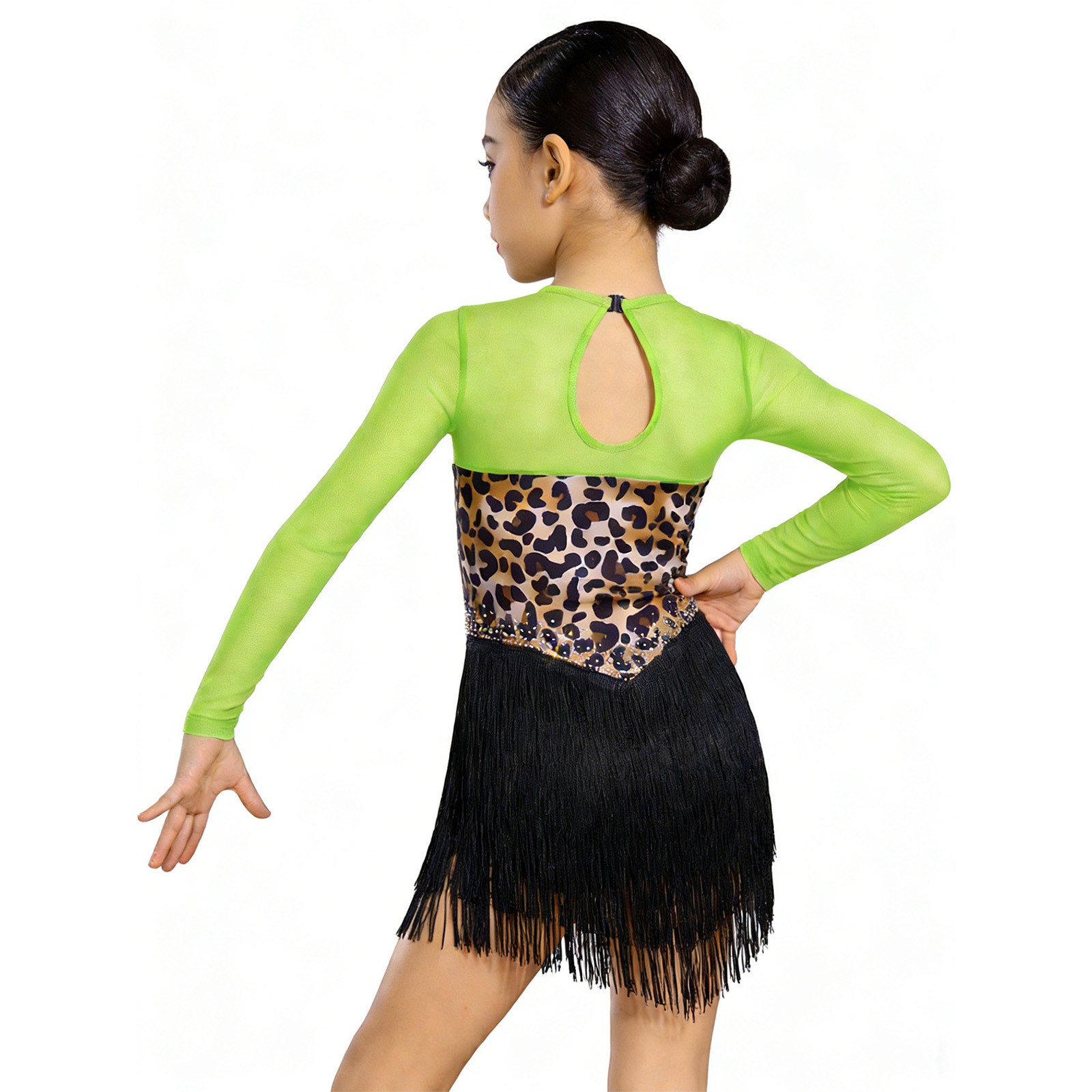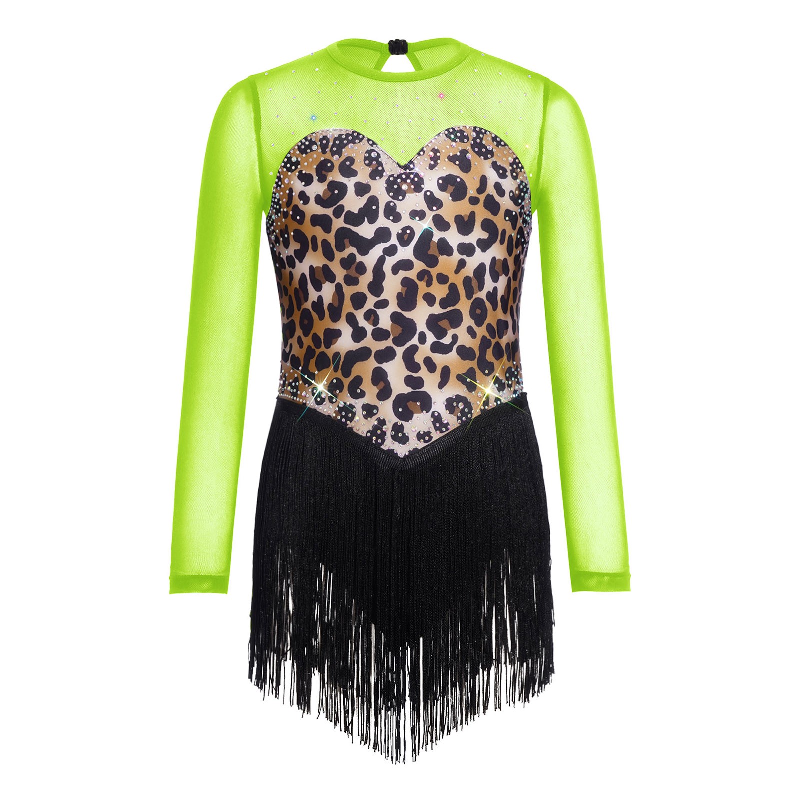 Kids Girls Leotard Leopard Dress Ruched Dancewear Back Costume Contemporary