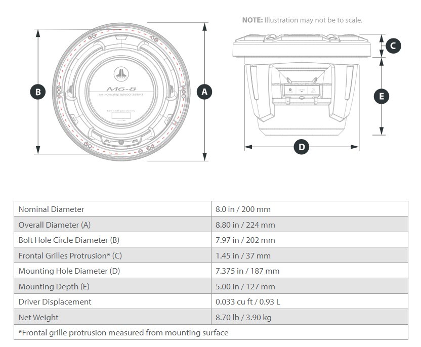 JL Audio M6 8in Subwoofer with Titanium Sport Grille Infinite Baffle