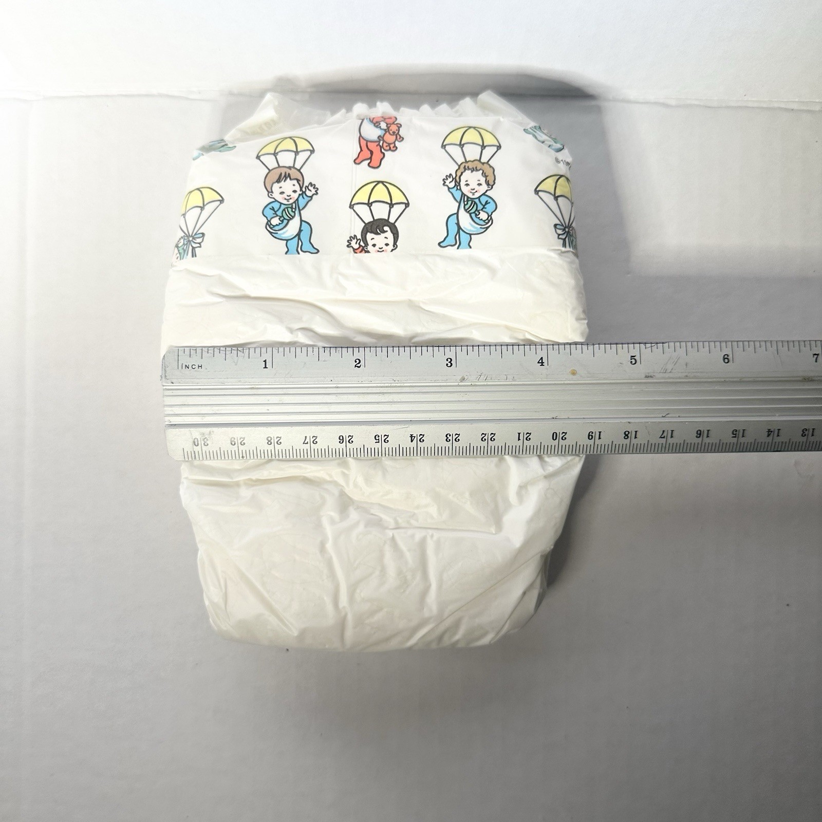 как выглядит 1 New RARE Vtg 1993 Pampers Plastic DIAPER Sz 1 Children In Yellow Parachutes фото