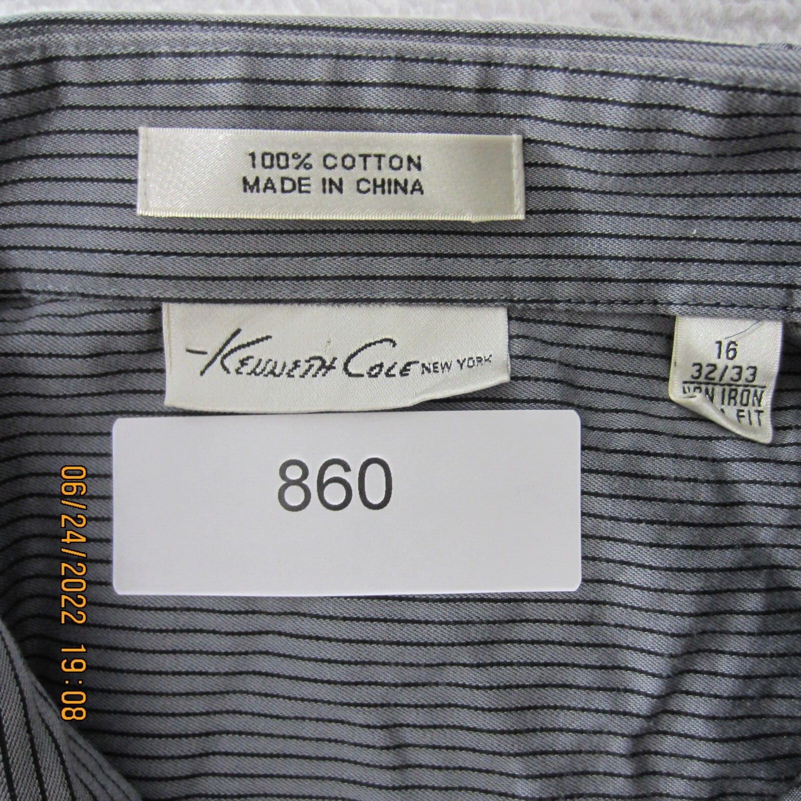 как выглядит Kenneth Cole Shirt Mens 16-32/33 Gray Black Button Up Long Sleeve Casual Cotton фото