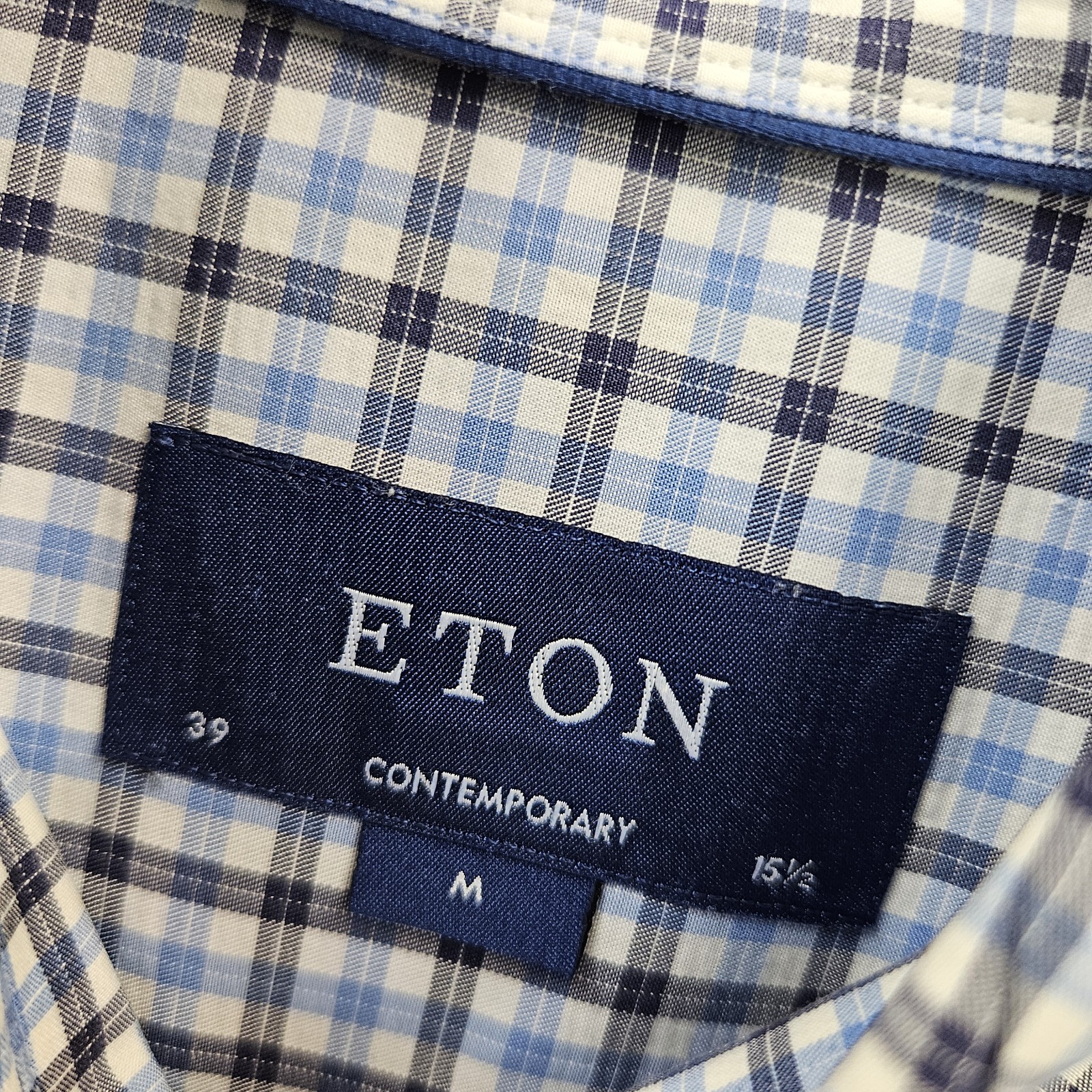 как выглядит ETON Contemporary Dress Shirt Men Medium Check Long Sleeve Blue Cotton Pinhole фото