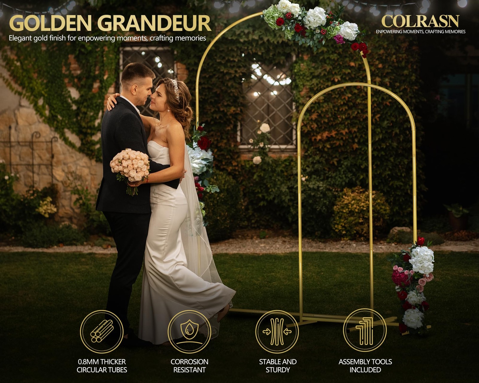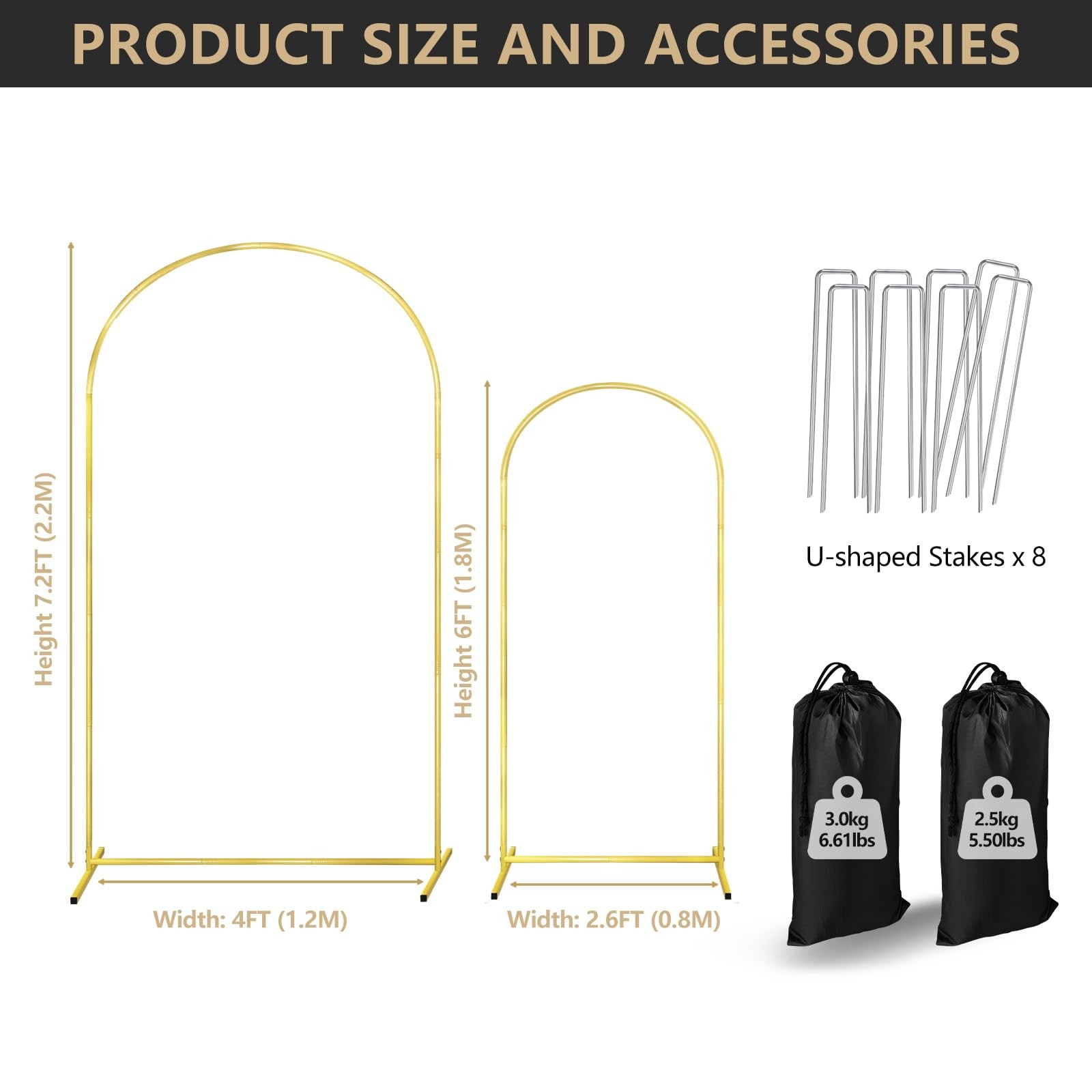 Gold Arch Backdrop Stand Set of 2 Metal Wedding Arch Stand 7.2FT 6FT Balloo...