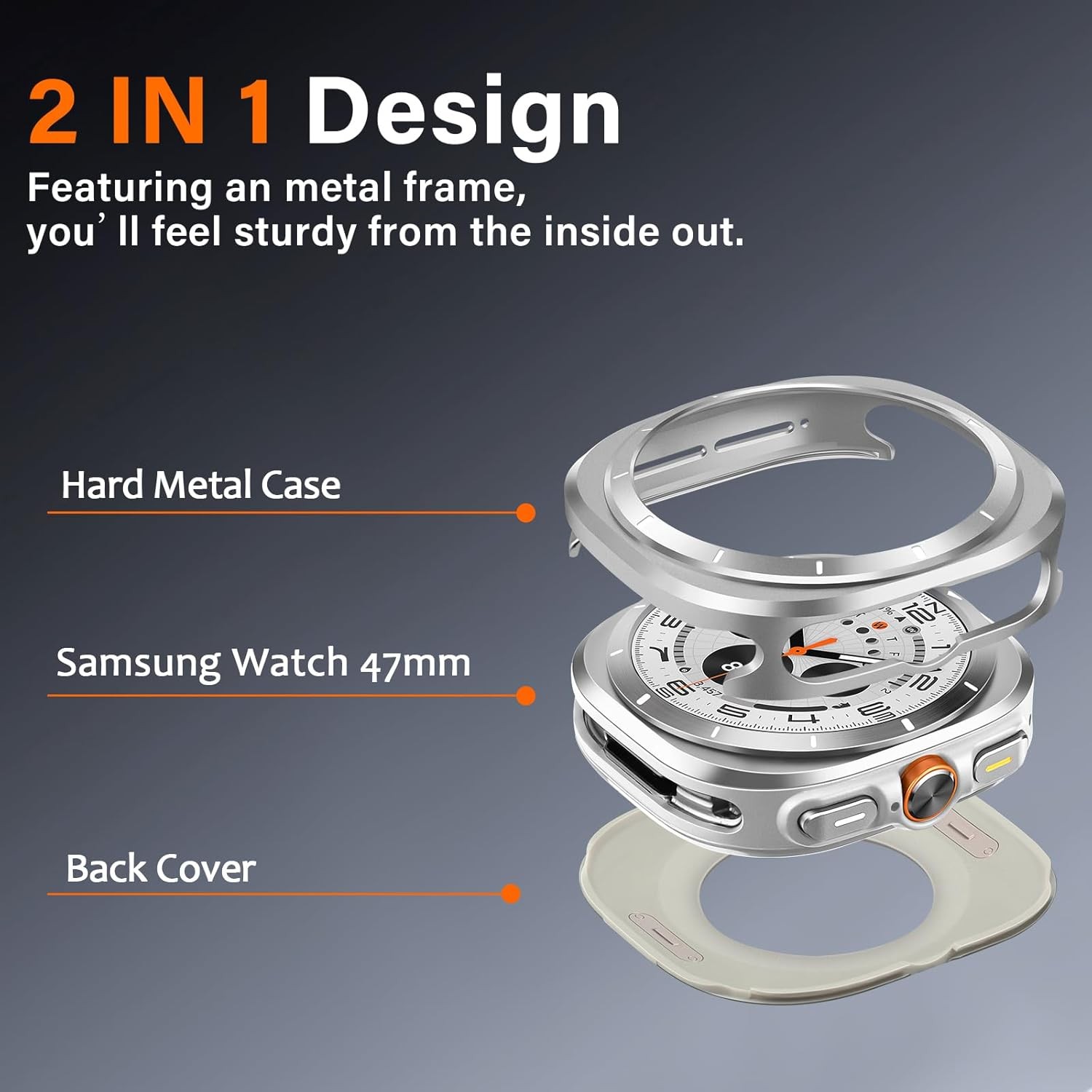 Rugged Case for Samsung Galaxy Watch Ultra 47mm with Back Cover, Metal Bumper