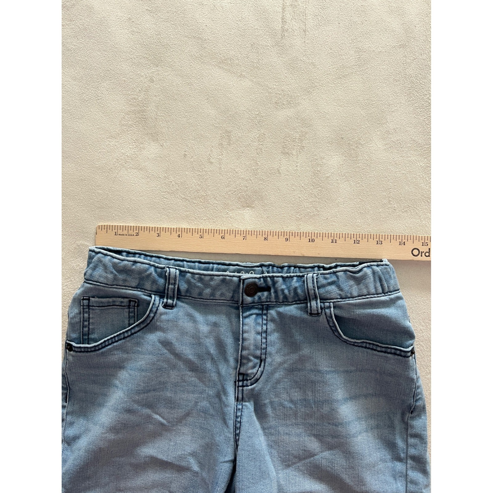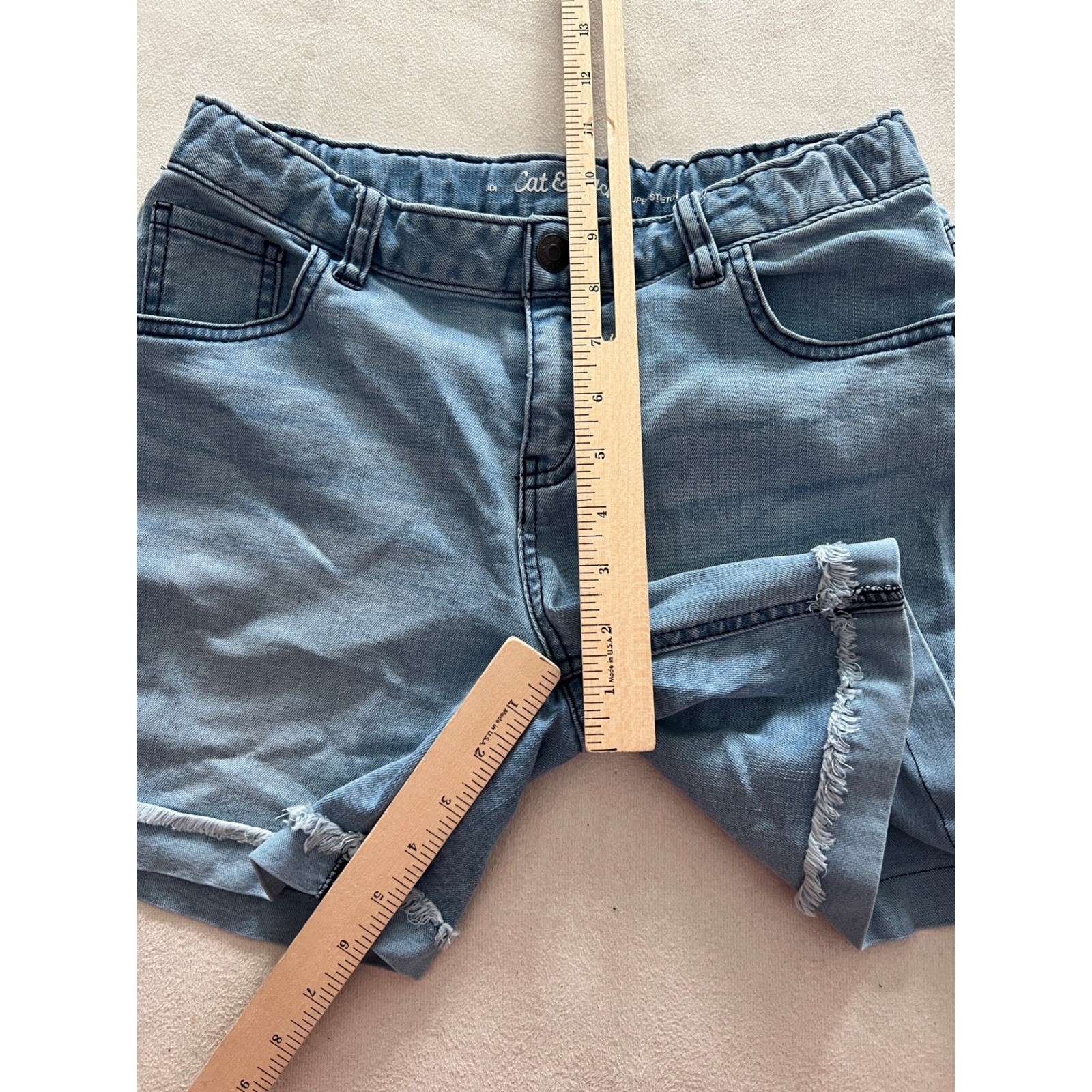 Cat Jack Girls Blue Super Stretch Denim Midi Shorts Frayed Hem XL 14/16