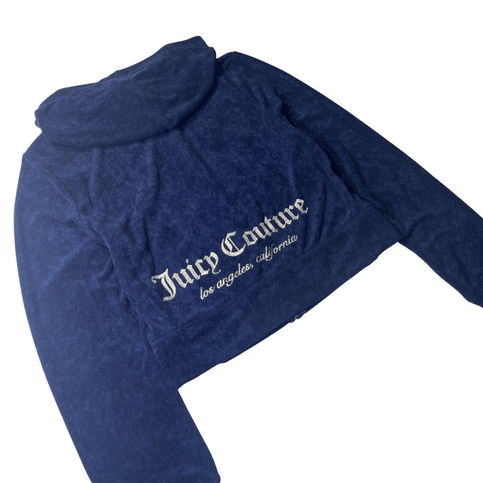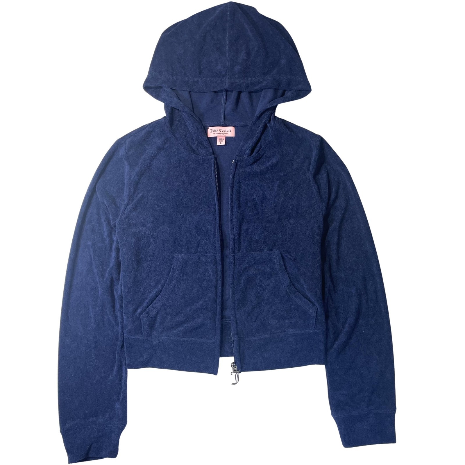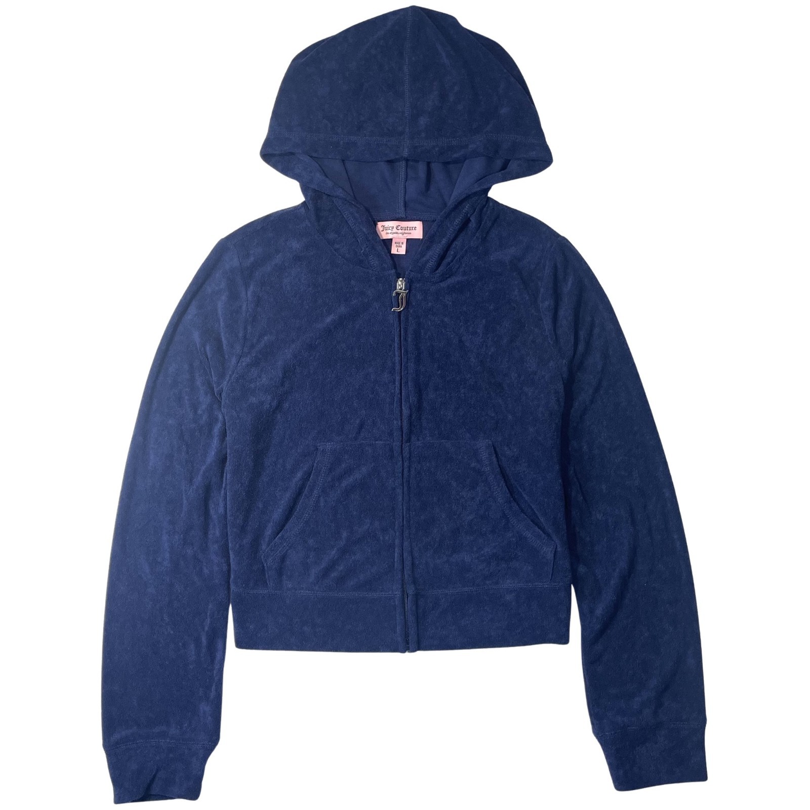 Juicy Couture Womens Y2K Terry Cloth Full Zip Hoodie Blue L